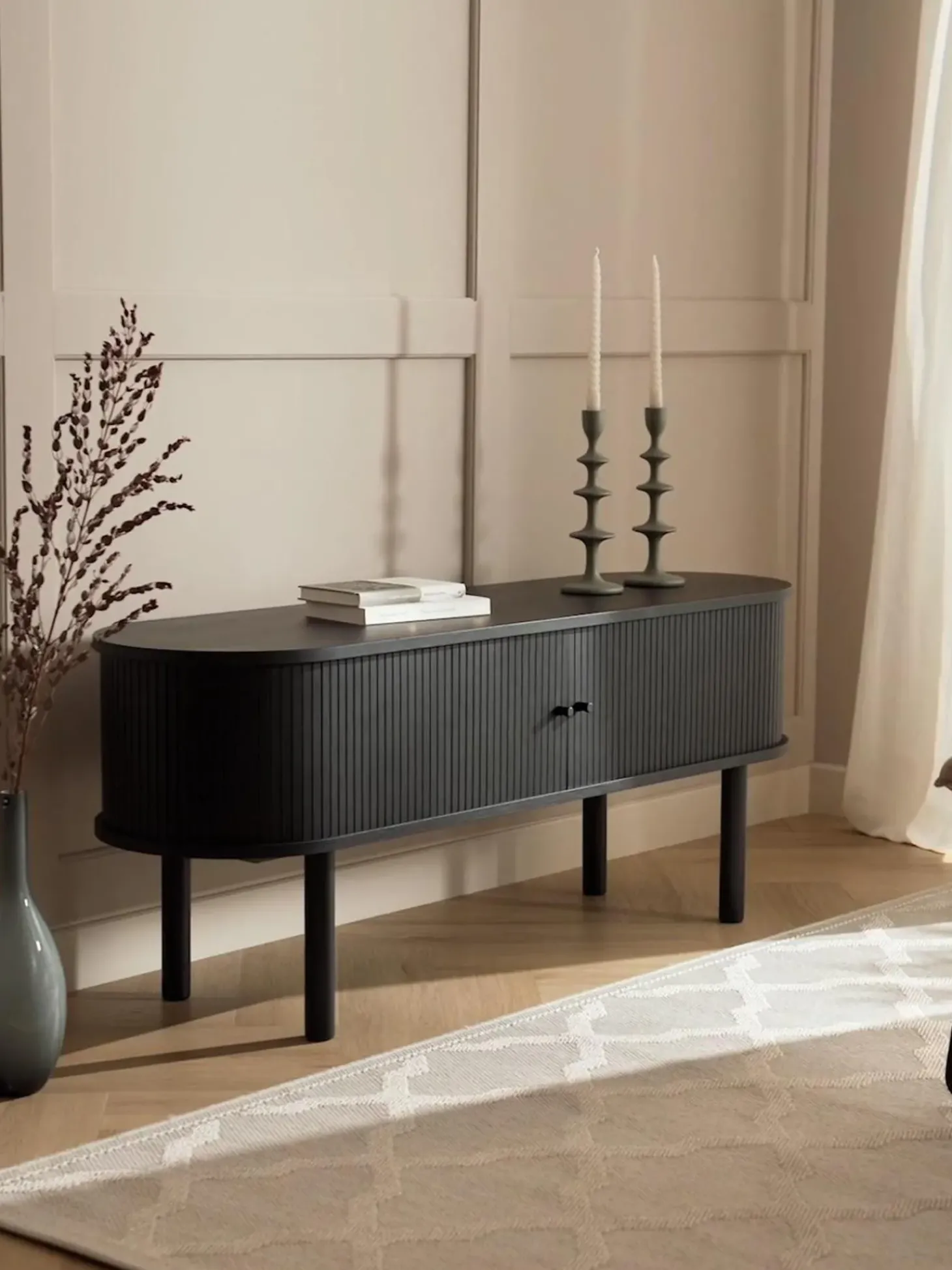 Los Materiales Naturales Son Actualmente Los Protagonistas Del Interior! La Colecci Calary Estu00E1 Fabricada Con Madera Sostenible Certificada Fsc. Una Estructura Ondulada Decorativa Adorna Los Frentes De Las Puertas Y Hace Que El Producto Sea Un Verdadero Punto Culminante De Diseu00F1O Y Atractivo! Adem, Sus Finas Patas Tambiu00E9N Hacen Que El Diseu00F1O Luzca Minimalista Y Limpio.Nneste Aparador Calary Tiene Dos Puertas Correderas, Dos Compartimentos Y Un Pasacables En La Parte Trasera.Nnhecho En Europa.