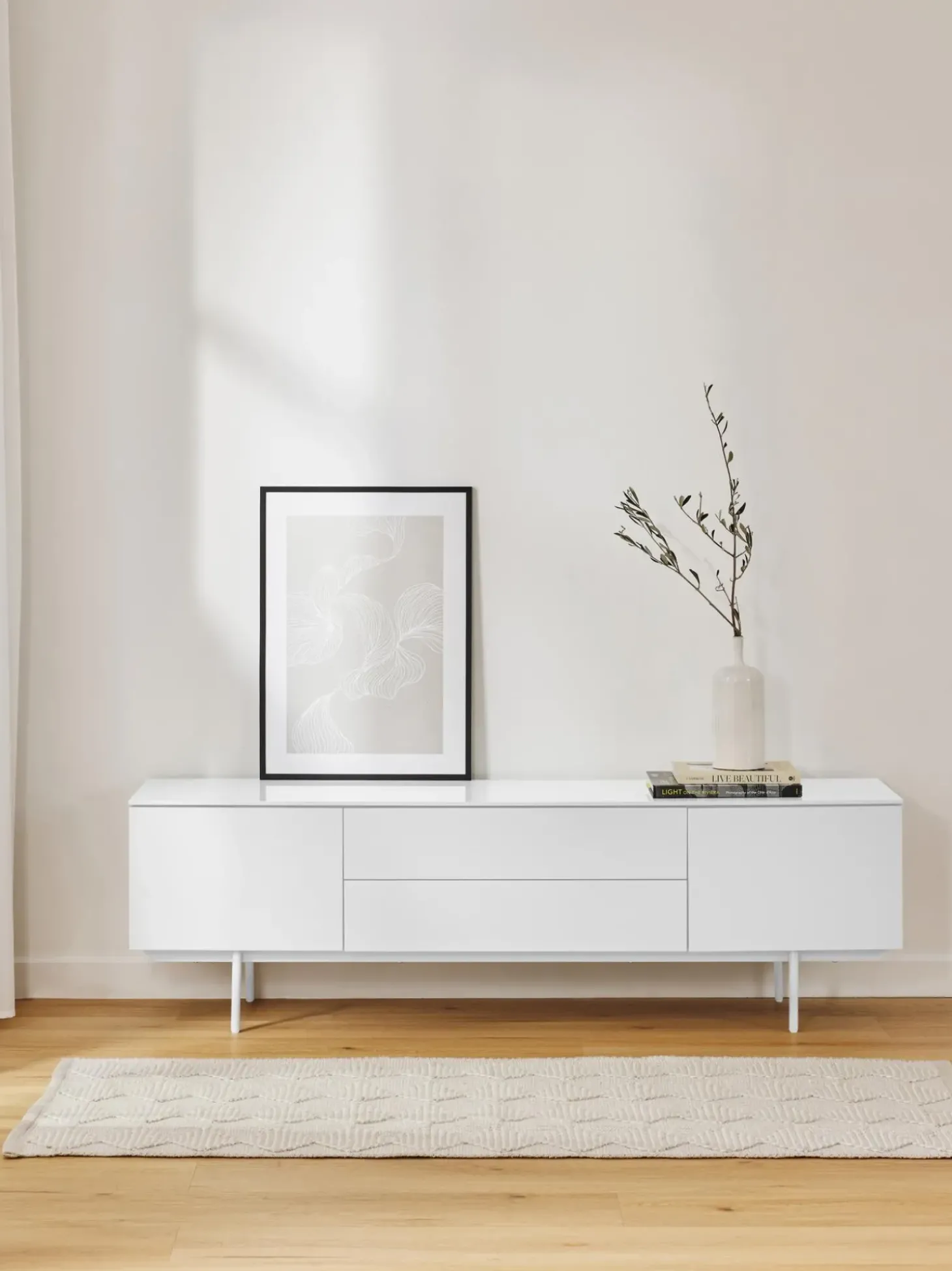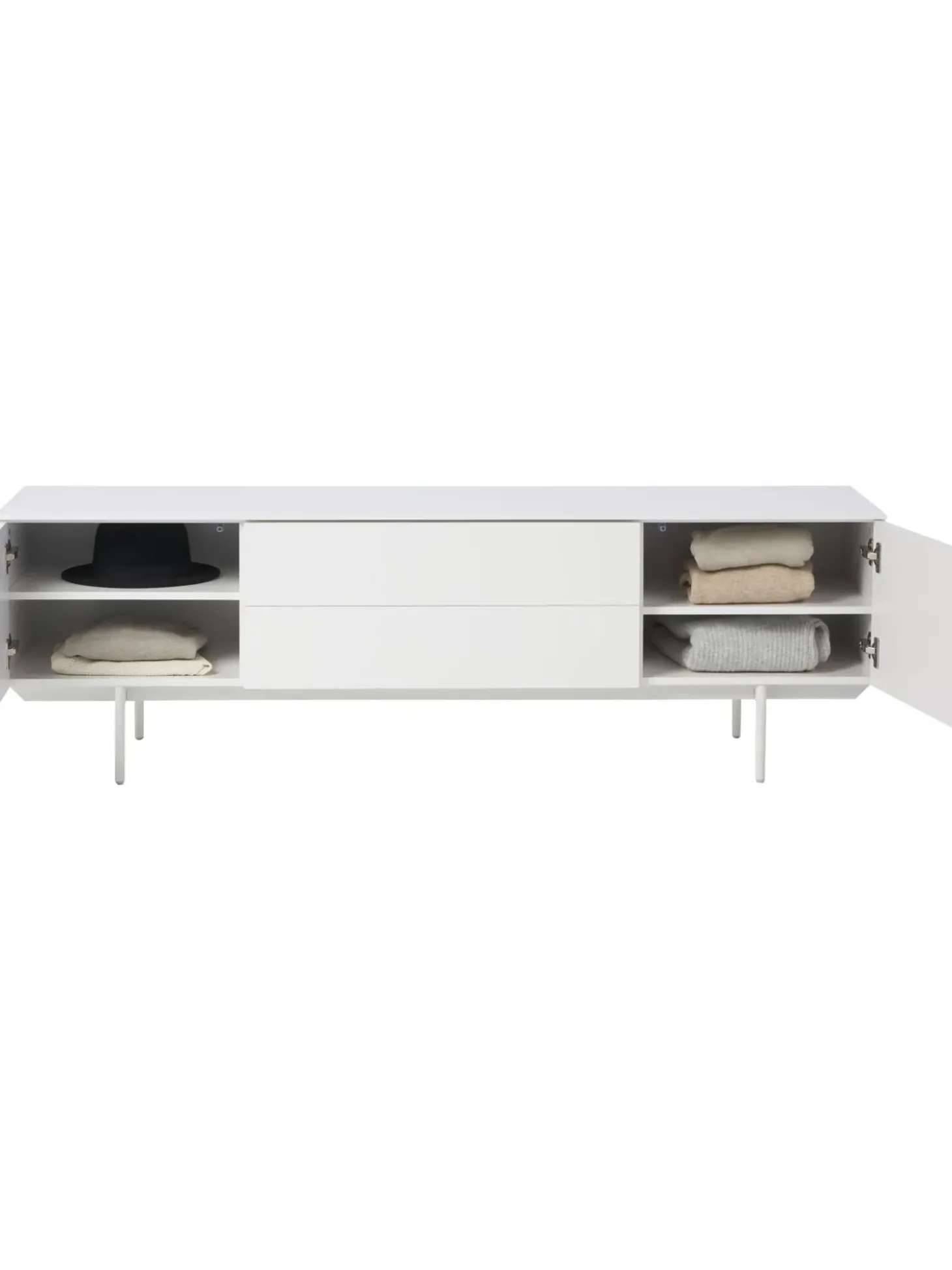 Este Aparador Tiene Dos Cajones Y Cuatro Compartimentos.Nlas Puertas Tienen Funci Push-To-Open Que Le Dan A Elyn Un Aspecto Minimalista Y Moderno.