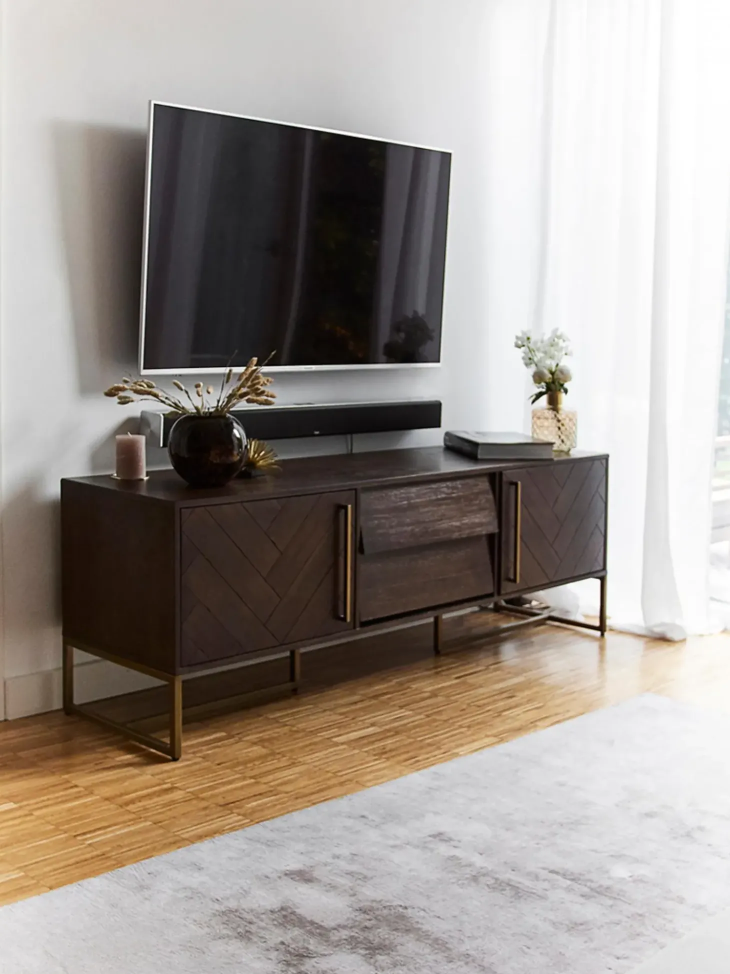 Este Aparador Tiene Dos Puertas, Seis Compartimentos Y Un Pasacables Por La Parte Trasera.Nnlos Estantes Son Ajustables En Altura Y, Por Lo Tanto, Se Adaptara A Tus Necesidades Individuales.