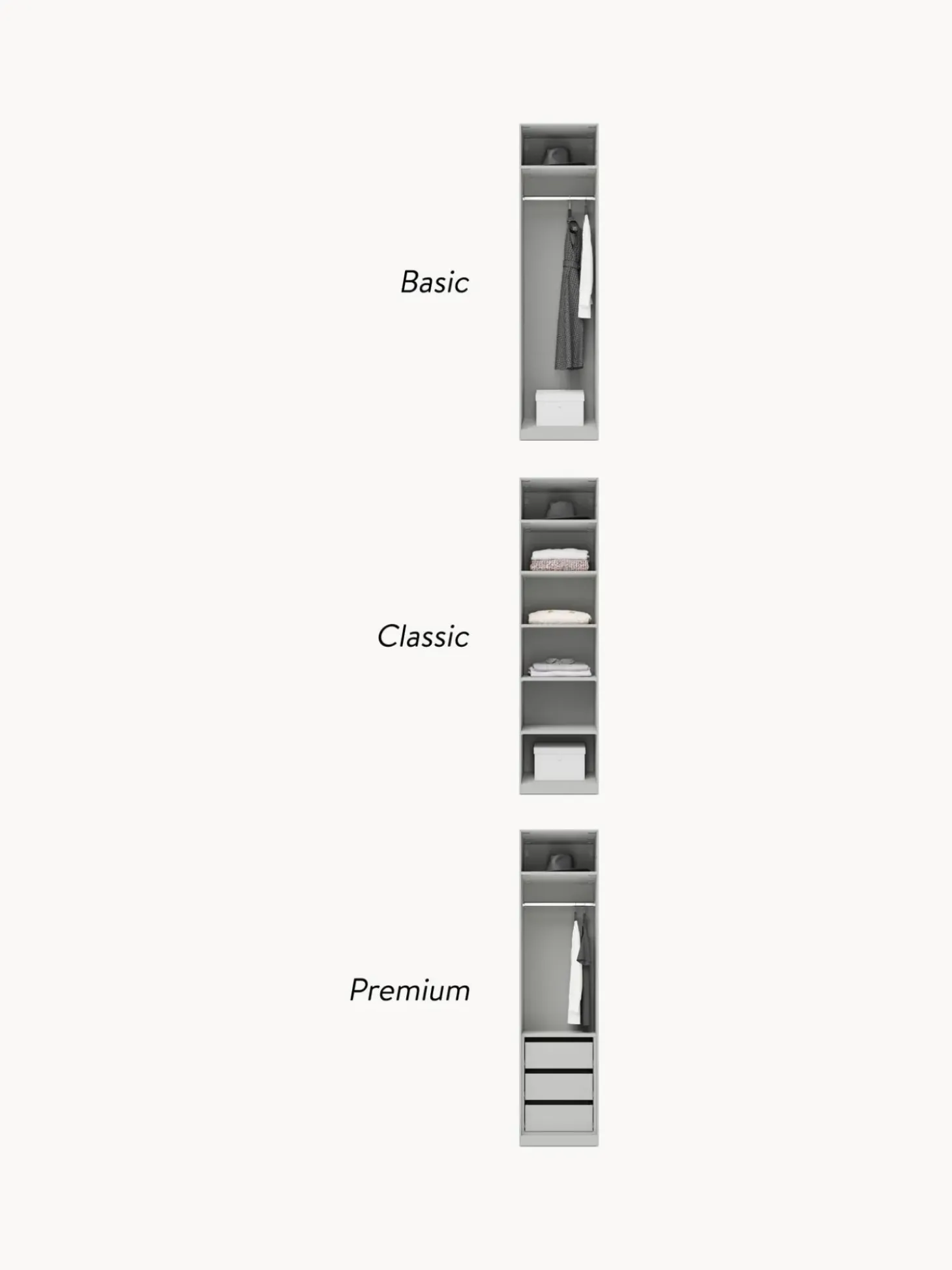 U00Bforden Y Modernidad Con Un Toque De Diseu00F1O No Hay Problema! Nuestro Armario Modular Leon En Exclusiva En Westwing Colletion Tiene Una Superficie Mate Y El Diseu00F1O De Sus Tiradores Le Da Ese Algo Especial! Definitivamente El Armario Se Adapta A Todos Los Dormitorios, Y Trae Consigo La Sensaci De Un Diseu00F1O Especial. Practico: El Armario Estu00E1 Disponible Tres Variantes Interiores (Basic, Classic, Premium) Y En Diferentes Alturas Y Anchuras, Y Opcionalmente Con Puertas Correderas O Batientes.Nn- Armario Modular Que Consta De 1 Mu00F3Dulo Con Diseu00F1O Interior Basic Que Incluye 1 Barra Para Colgar Ropa Y 1 Estanten- Puertas Con Sistema Soft-Close (Cierre Suave)N- Con Barra Y Estantes De Ropa Regulables En Alturan- La Construcci Vertical Y Los Elementos Del Armario Premontados Reducen El Trabajo De Montajen- Hecho En Europannel Diseu00F1O Se Mezcla Con La Funcionalidad. Diseu00F1A Tu Armario Leon A Tu Gusto Combinando Mu00F3Dulos Individuales O Ampliando El Armario Leon Ya Existente. Todos Los Mu00F3Dulos Leon Se Pueden Encontrar En Nuestra Gama.Nntu Armario Debe Ser Tan U00Fanico Como Tu Estilo! Nuestro Armario Leon Te Ofrece Tres Interiores Diferentes Para Que Puedeas Elegir Cual Te Satisficace Tus Necesidades Mejor:Nninterior Basic:N- Nu00Famero De Barras: 1N- Nu00Famero De Estantes: 1N- Nu00Famero De Cajones: 0Nninterior Classic:N- Nu00Famero De Barras: 0N- Nu00Famero De Estantes: 5N- Nu00Famero De Cajones: 0Nninterior Premium:N- Nu00Famero De Barras: 1N- Nu00Famero De Estantes: 1N- Nu00Famero De Cajones: 3