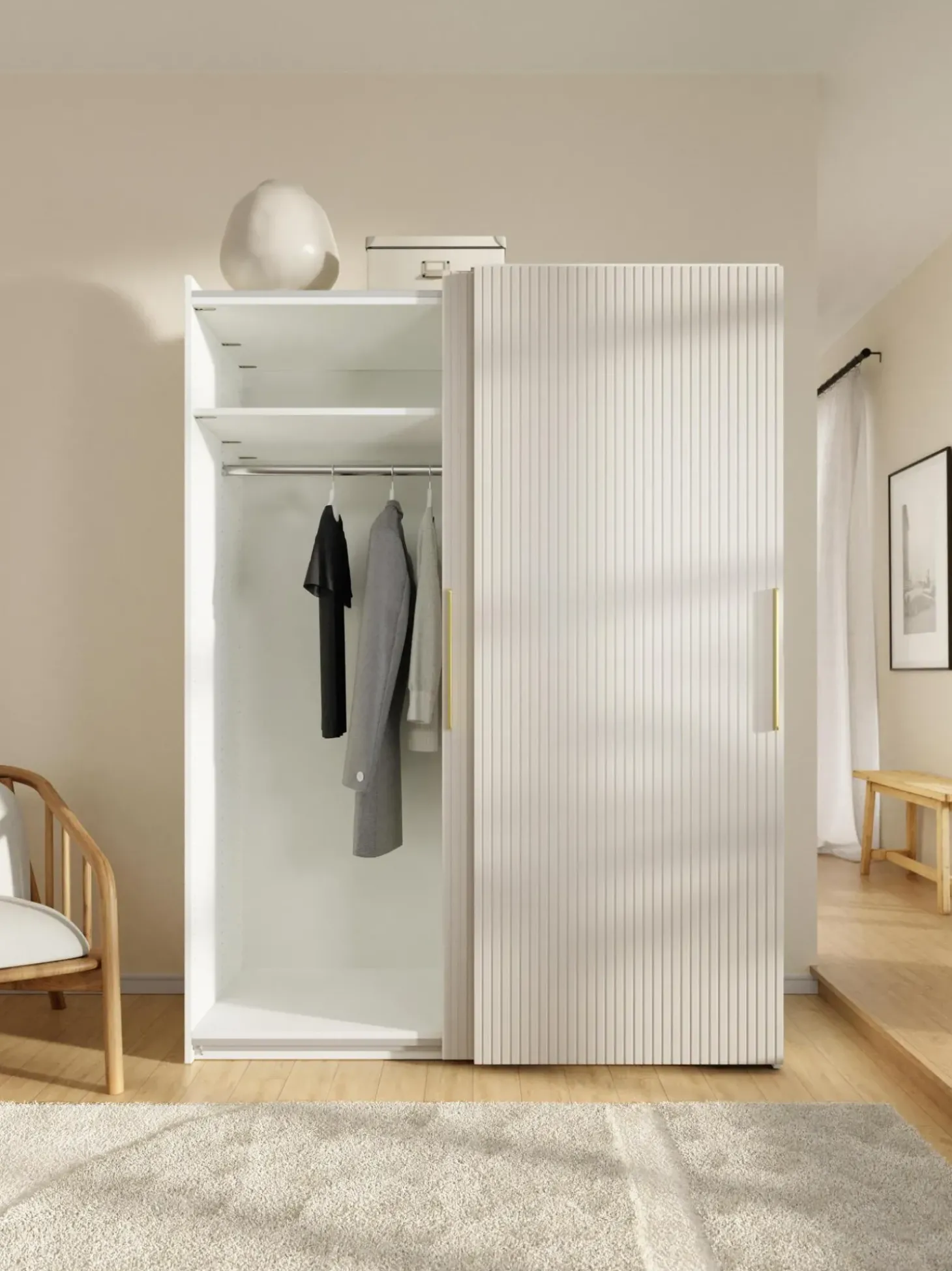U00Danico, Diverso Y Modular. Nuestra Serie De Armarios Simone, En Exclusiva En Westwing Colletion, Estu00E1 Diseu00F1Ada Pensado En Todos Los Detalles! Segu00Fan Tus Necesidades, El Armario Estu00E1 Disponible Tres Variantes Interiores (Basic, Classic, Premium), En Diferentes Alturas Y Anchuras Y Conu00A0Puertas Correderas O Batientes. El Armario Con Su Aspecto Elegante Y Glamuroso No Solo Impresiona Por Su Pru00E1Ctico Interior, Sino Tambiu00E9N Por El Inusual Aspecto De Lu00E1Minas En Lasu00A0Puertas. Un Verdadero Punto Culminante Del Diseu00F1O En Cada Dormitorio!Nn- Armario Modular Que Consta De 2 Mu00F3Dulos Con Diseu00F1O Interior Basic Que Incluye 2 Barras Para Colgar Ropa Y 2 Estantesn- Puertas Correderas Que Se Abren Silenciosamenten- Con Barra Y Estantes De Ropa Regulables En Alturan- La Construcci Vertical Y Los Elementos Del Armario Premontados Reducen El Trabajo De Montajen- Hecho En Europannel Diseu00F1O Se Mezcla Con La Funcionalidad. Diseu00F1A Tu Armario Simone A Tu Gusto Combinando Mu00F3Dulos Individuales O Ampliando El Armario Simone Ya Existente. Todos Los Mu00F3Dulos Simone Se Pueden Encontrar En Nuestra Gama. Tu Armario Debe Ser Tan U00Fanico Como Tu Estilo! Nuestro Armario Simone Te Ofrece Tres Interiores Diferentes Para Que Puedeas Elegir Cual Te Satisficace Tus Necesidades Mejor:Nninterior Basic:N- Nu00Famero De Barras: 2N- Nu00Famero De Estantes: 2N- Nu00Famero De Cajones: 0Nninterior Classic:N- Nu00Famero De Barras: 1N- Nu00Famero De Estantes: 6N- Nu00Famero De Cajones: 0Nninterior Premium:N- Nu00Famero De Barras: 1N- Nu00Famero De Estantes: 6N- Nu00Famero De Cajones: 3