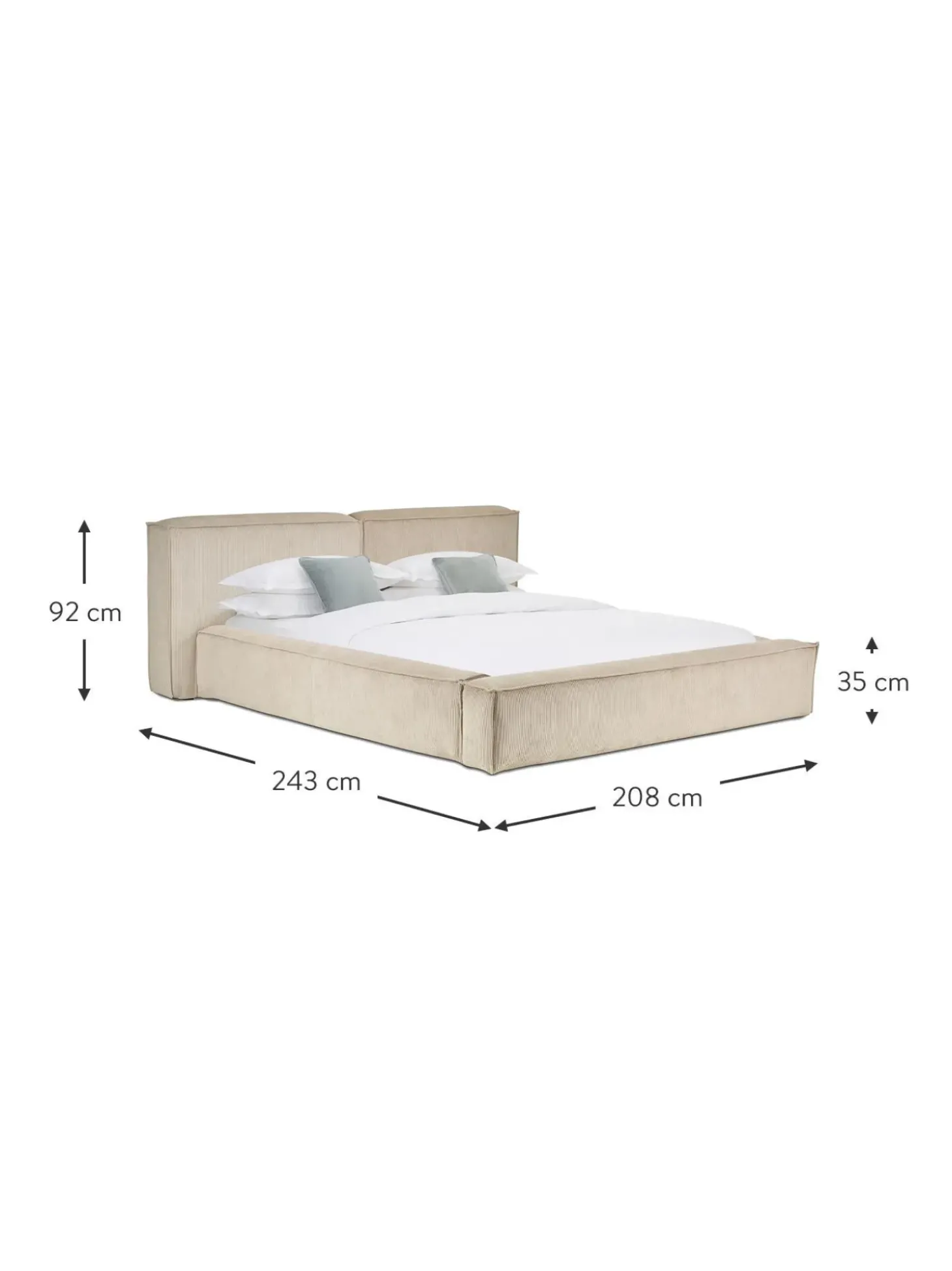 Cama Tapizada En Pana Lennon, Con Espacio De Almacenamiento