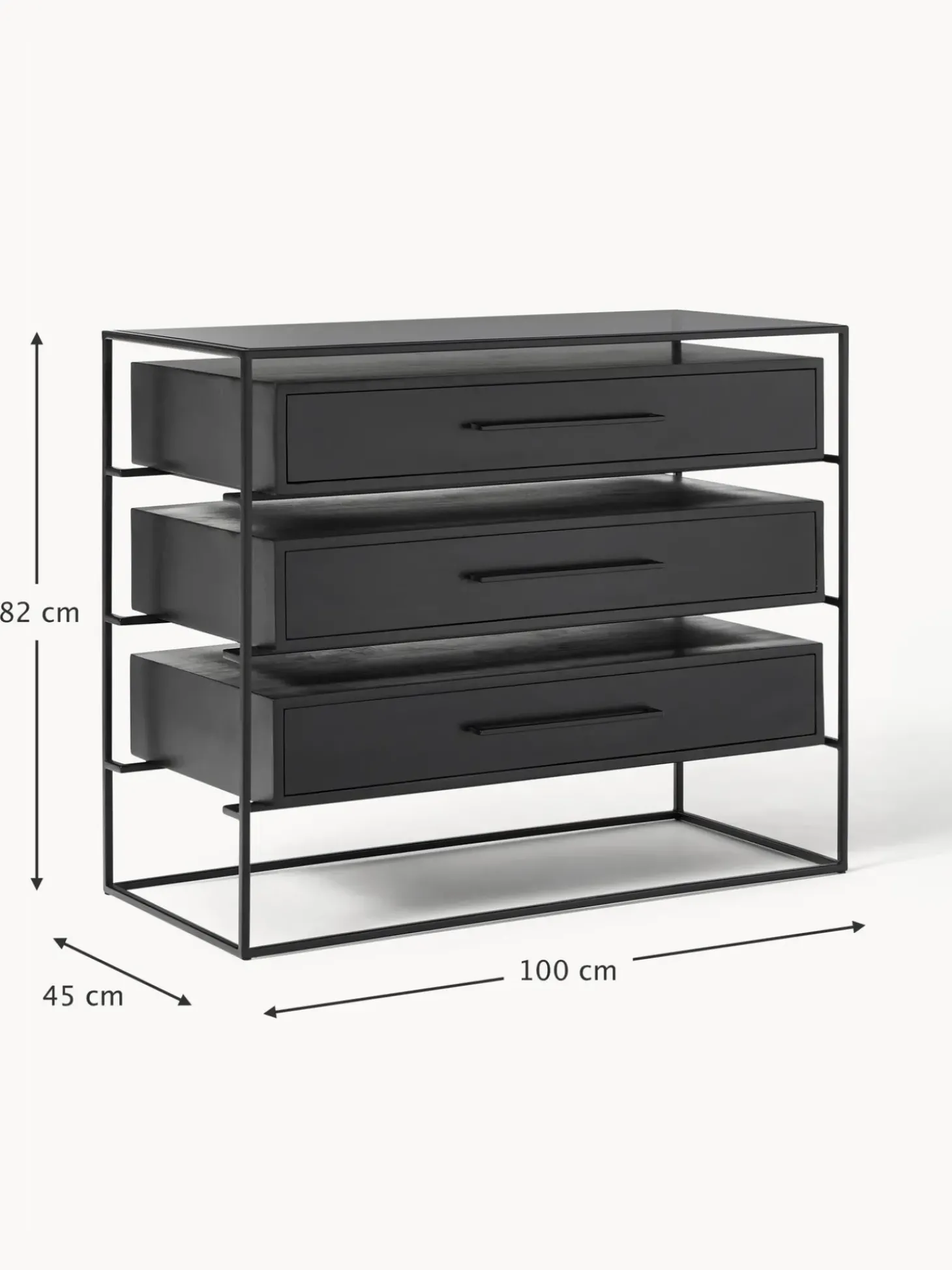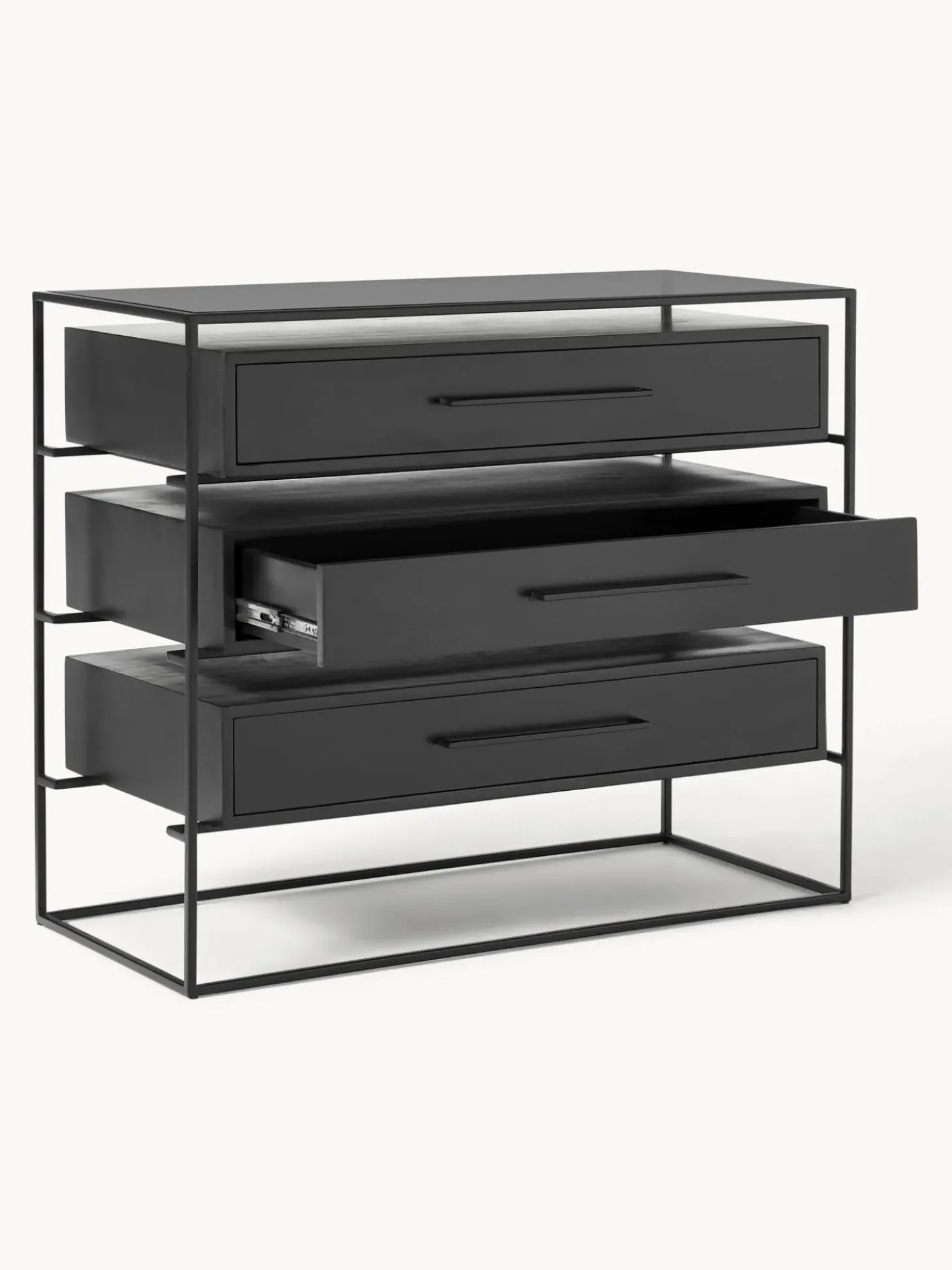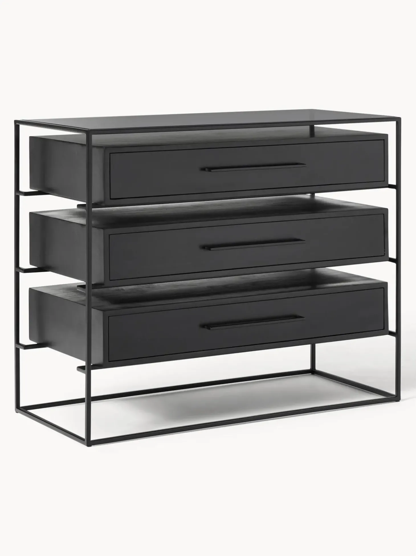 Comoda Cajonera Lyle, Con Tablero De Cristal