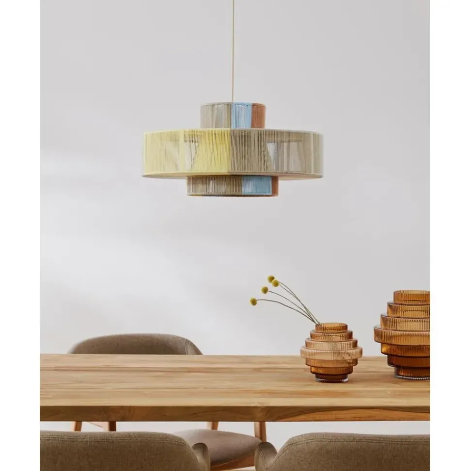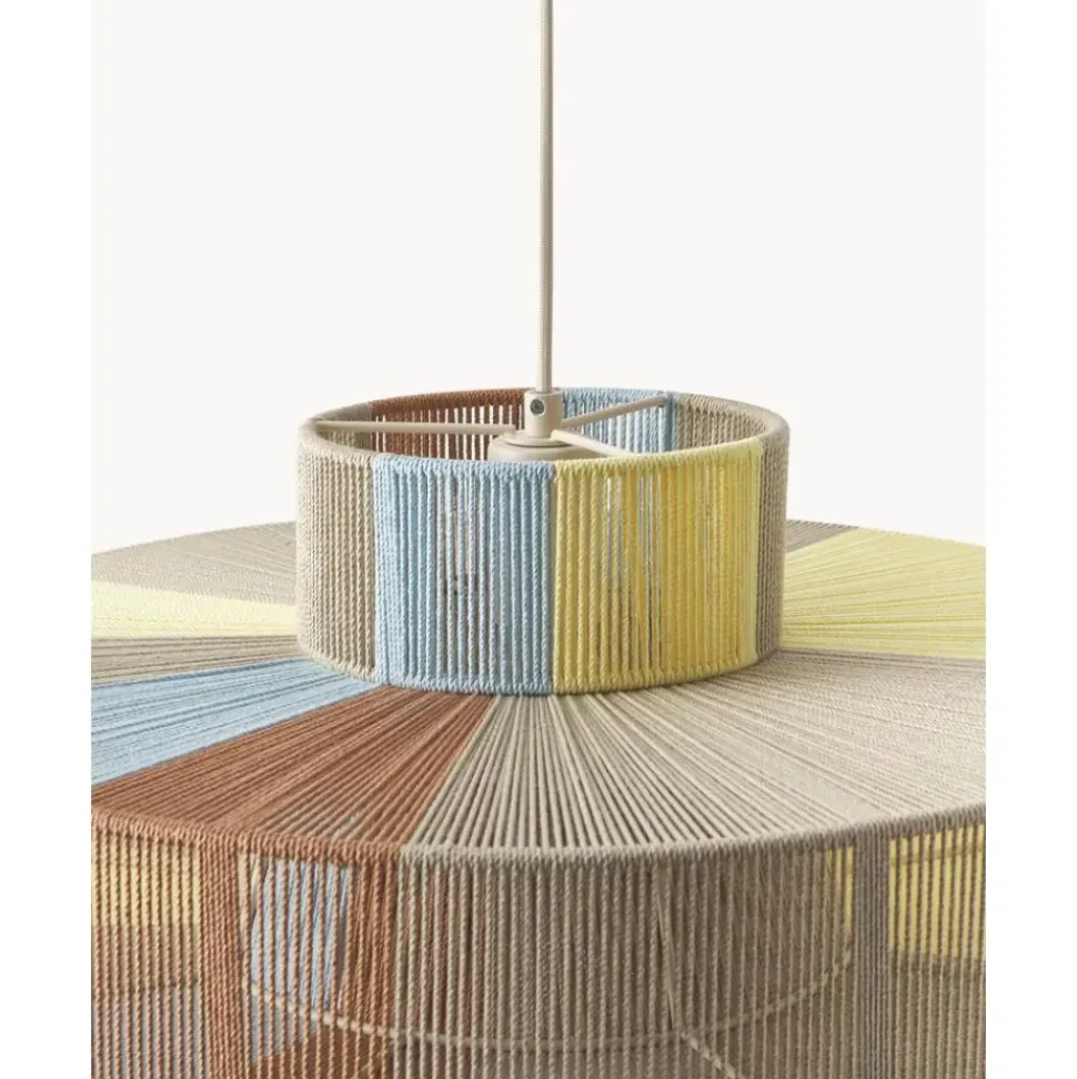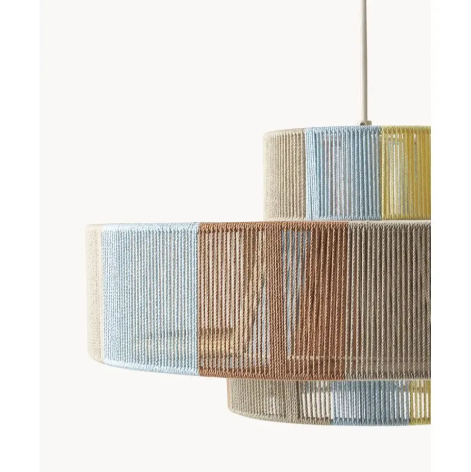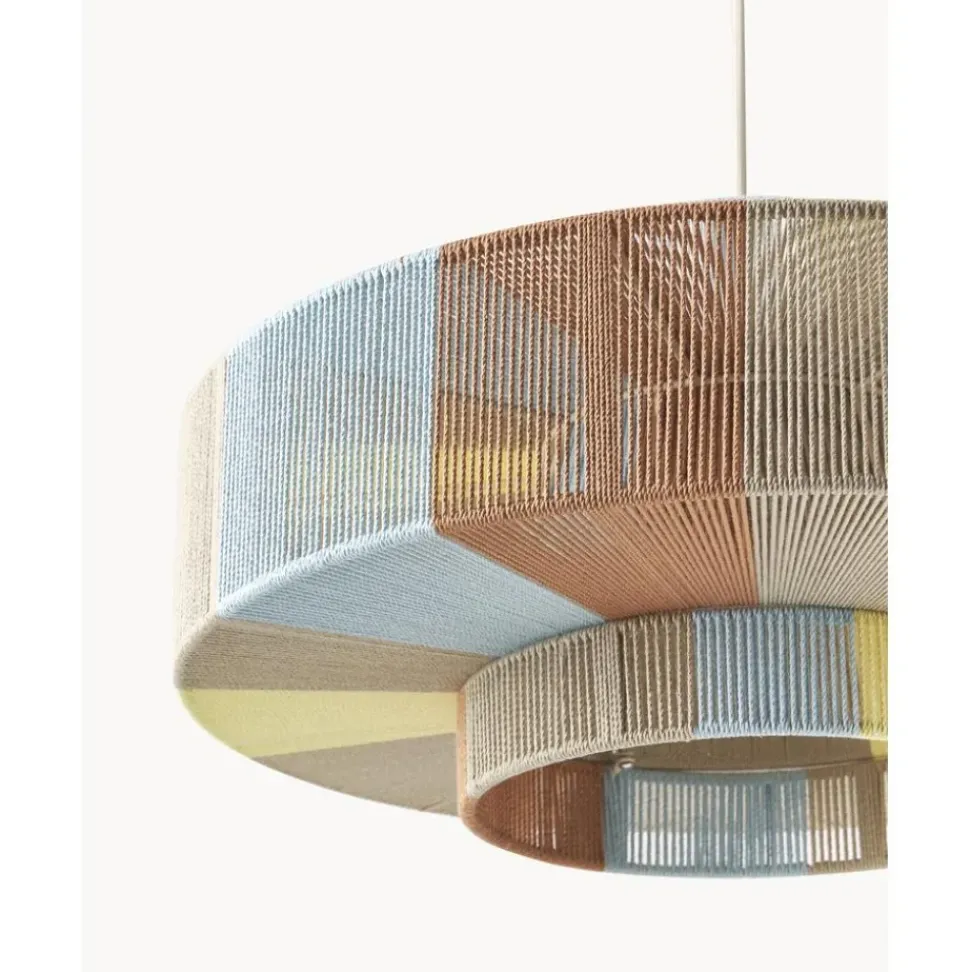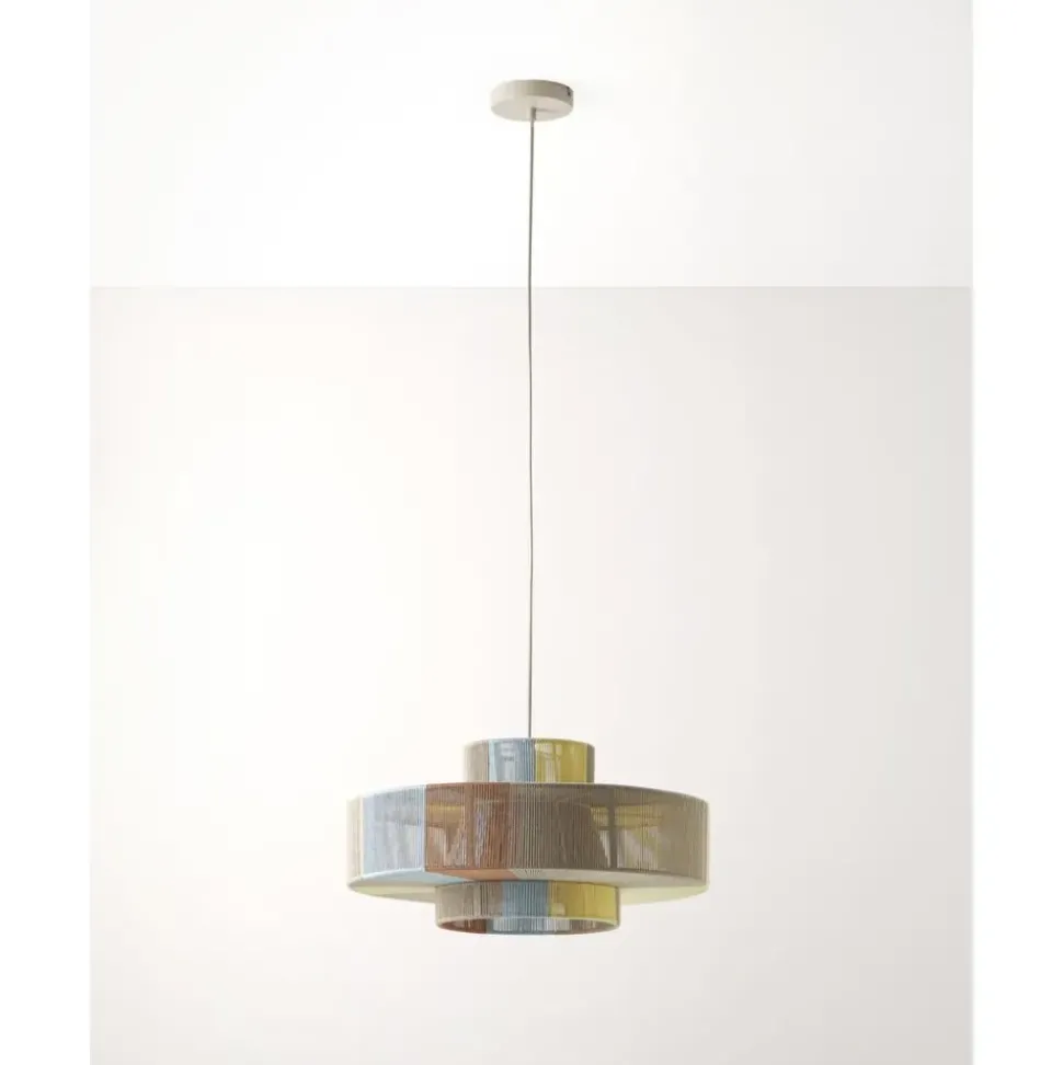 Lu00E1Mpara De Techo En Estilo Boho Pantalla Hecha De Hilos De Lino De Colores.