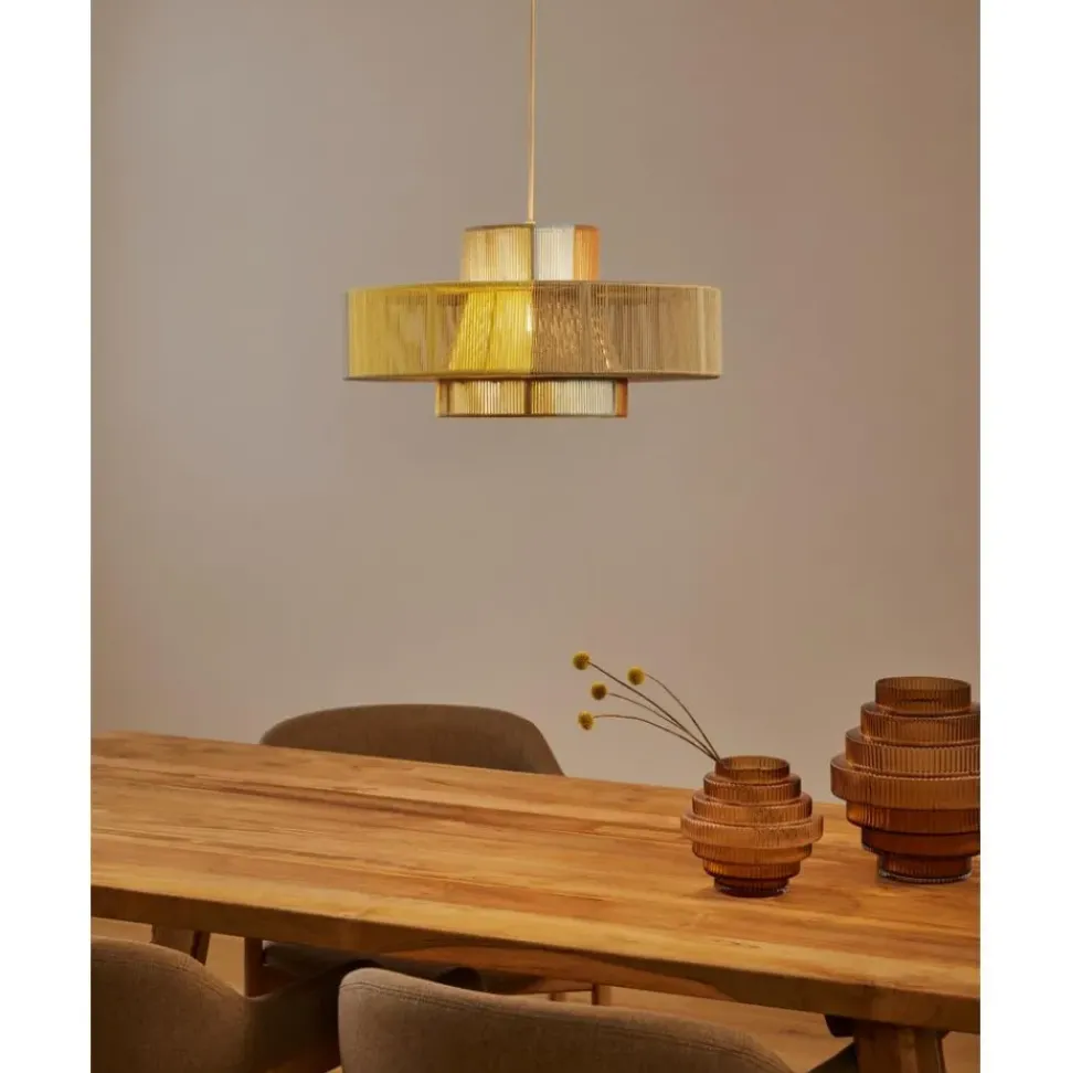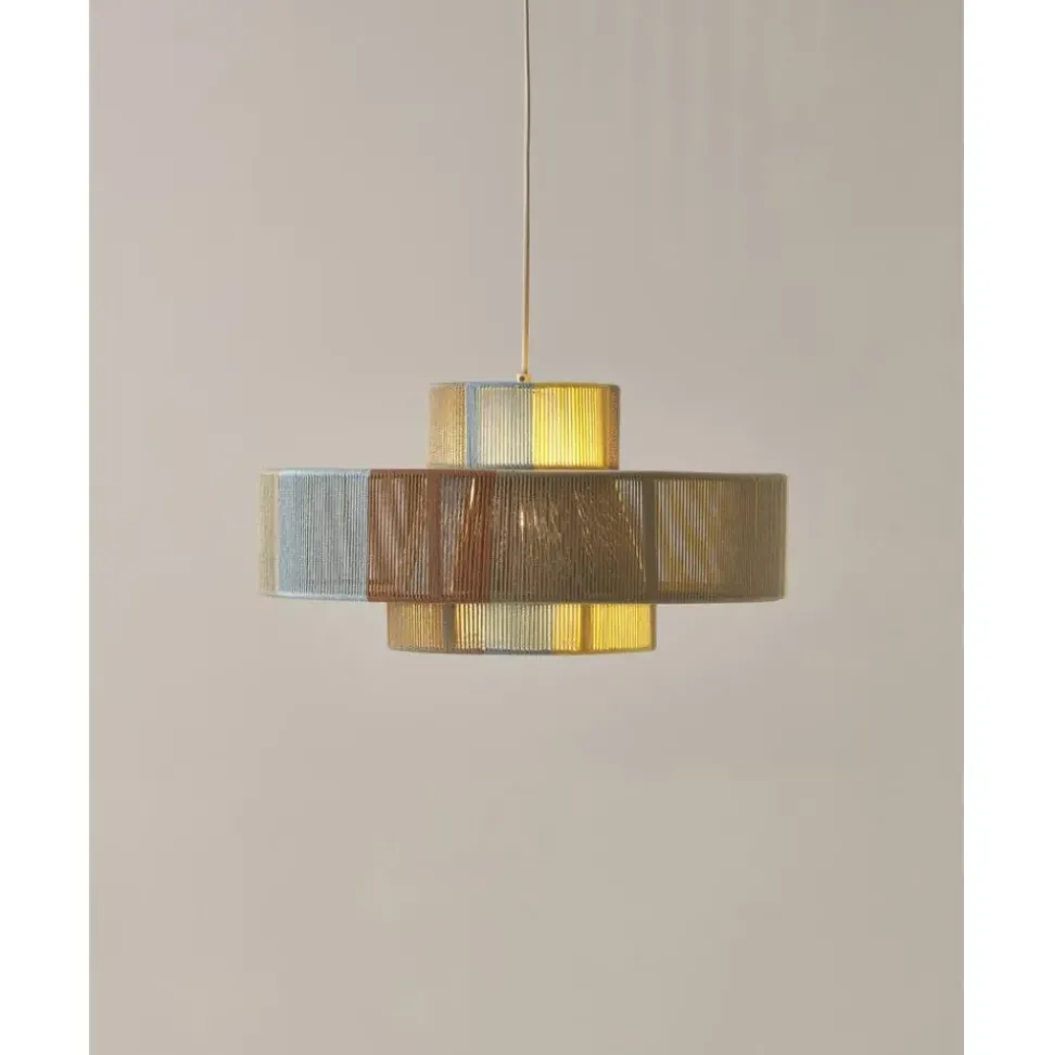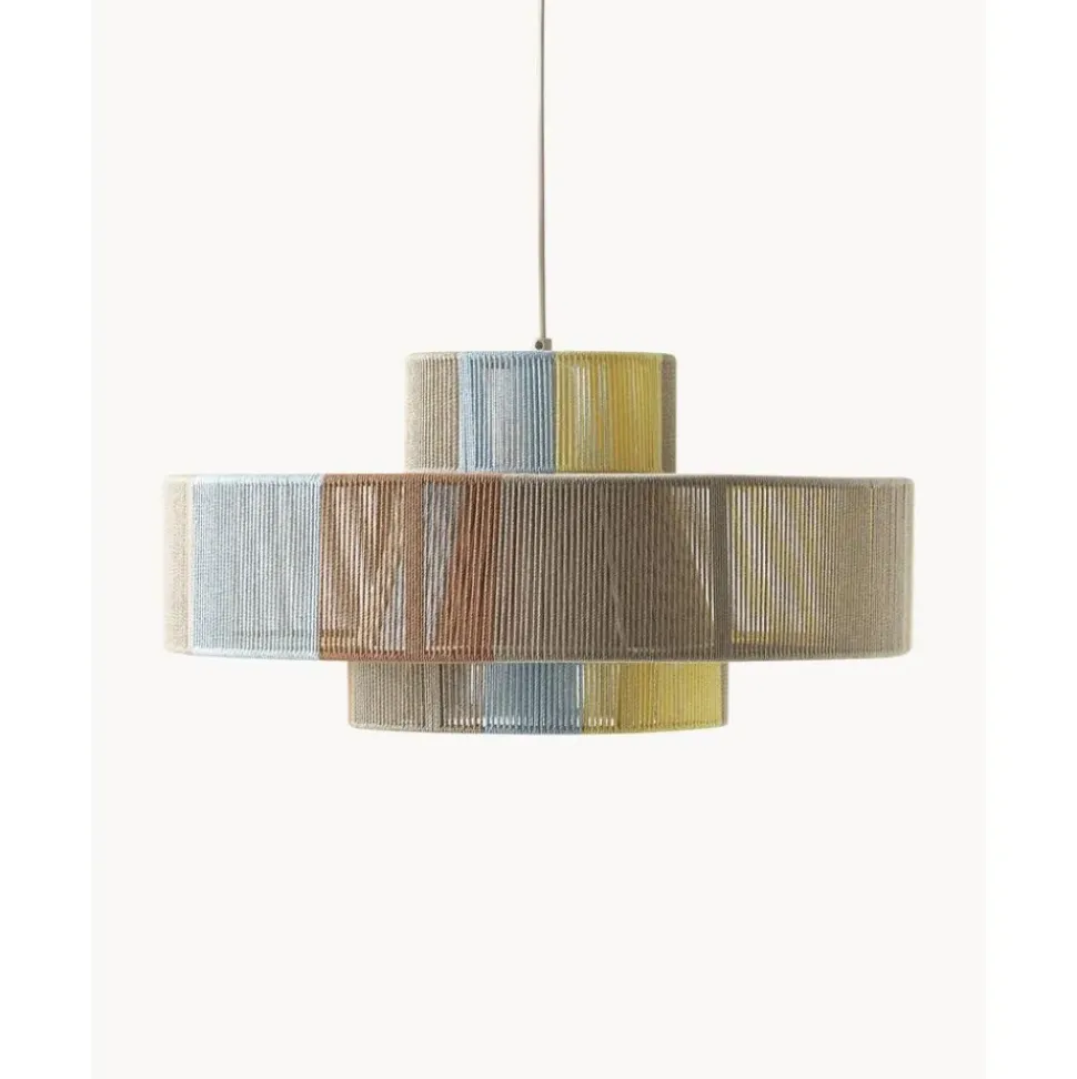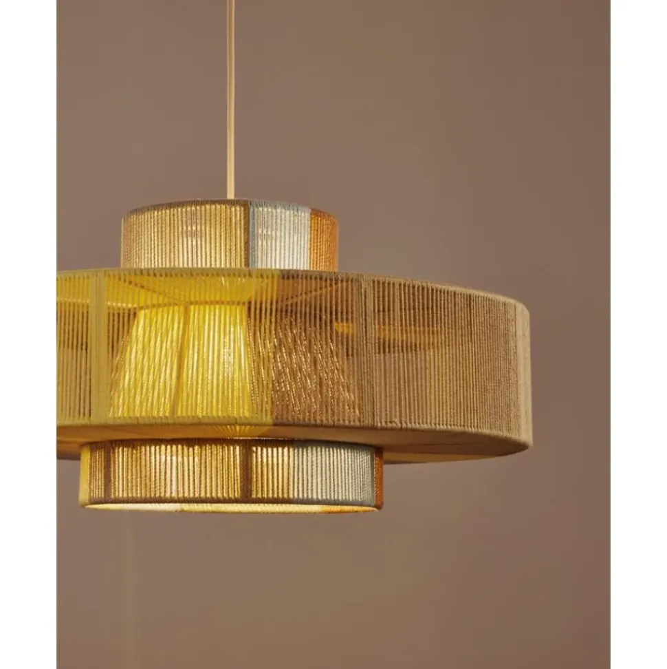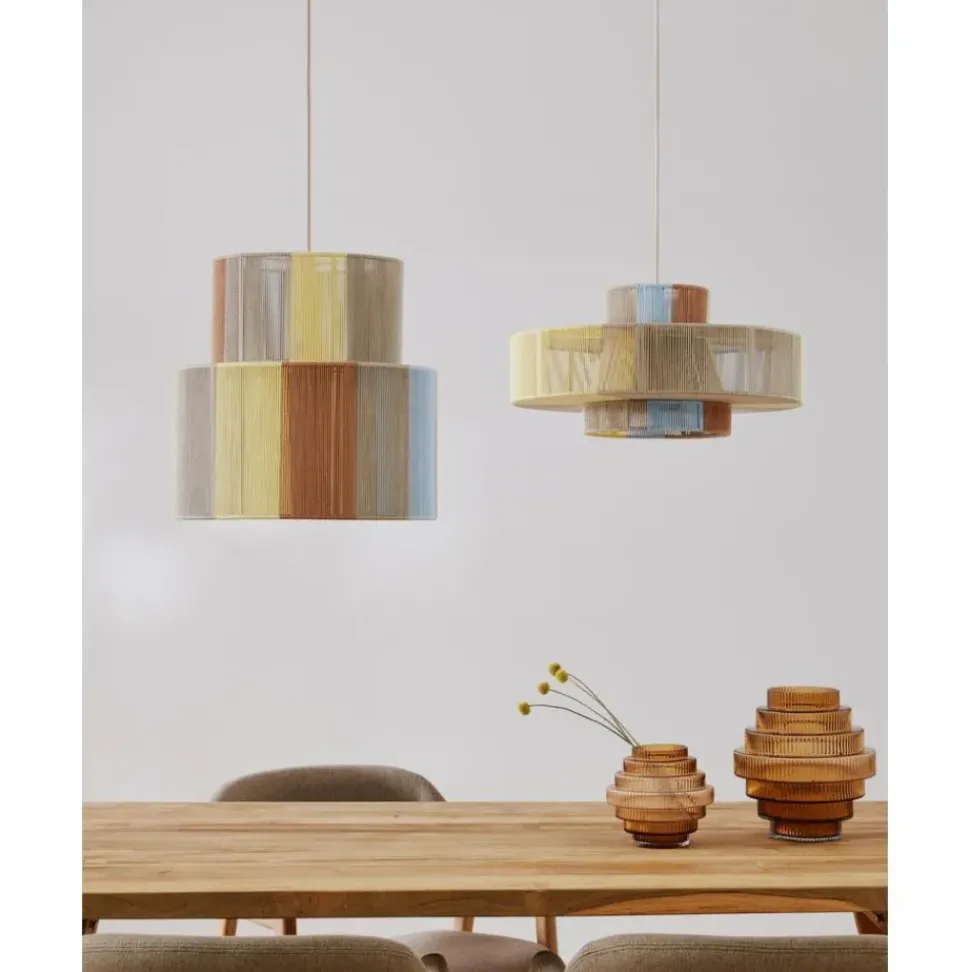 Lu00E1Mpara De Techo En Estilo Boho Pantalla Hecha De Hilos De Lino De Colores.