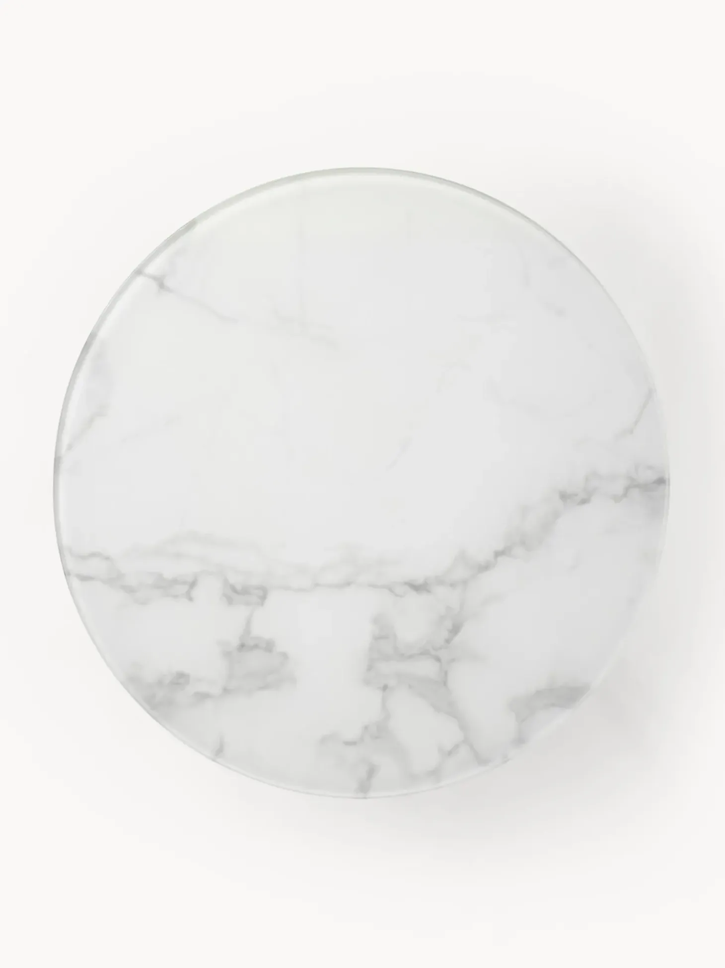 Mesa Auxiliar Redonda Antigua, Tablero De Vidrio En Aspecto Marmol