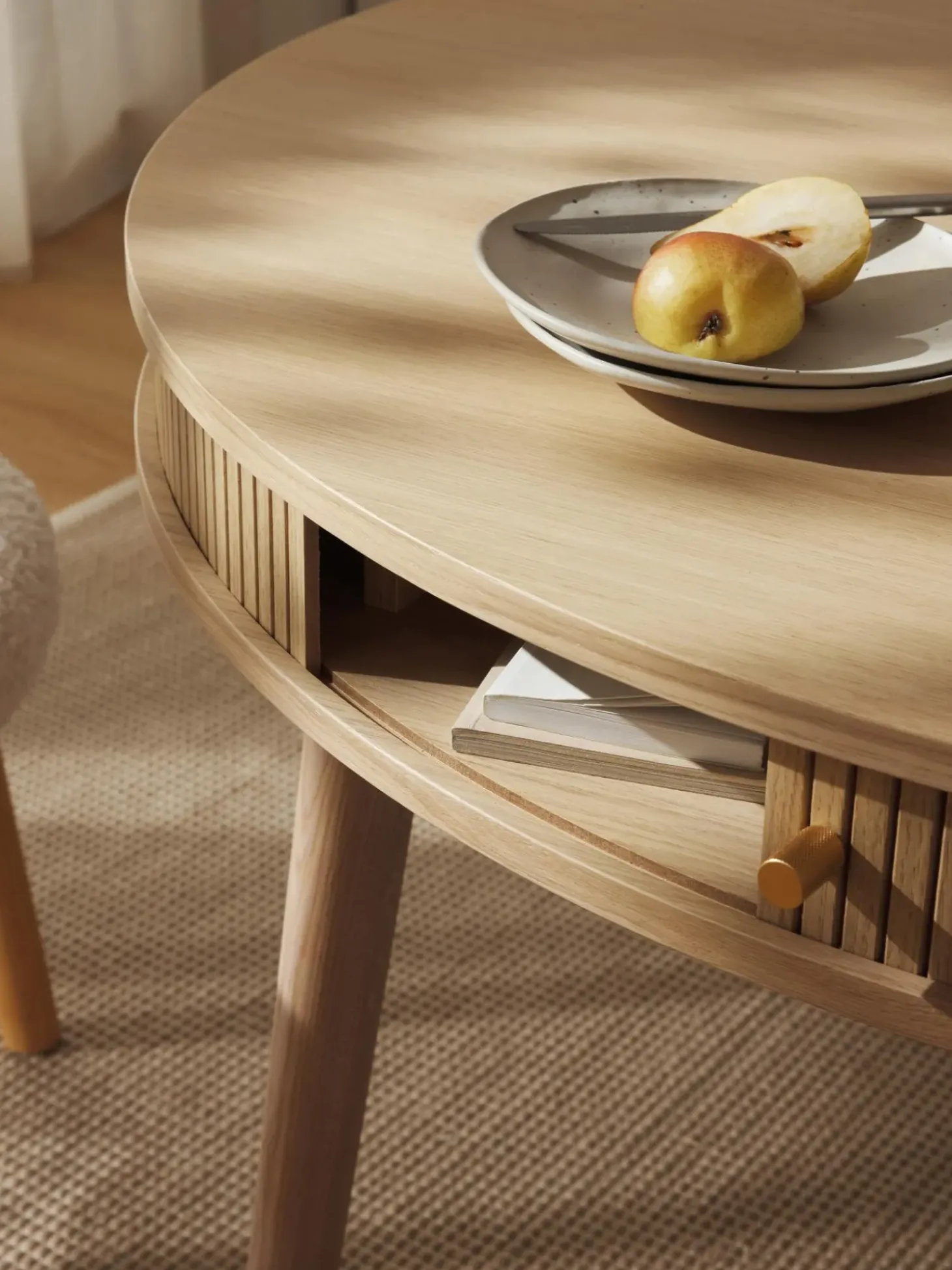 Mesa De Comedor Redonda Calary, Con Espacio De Almacenamiento
