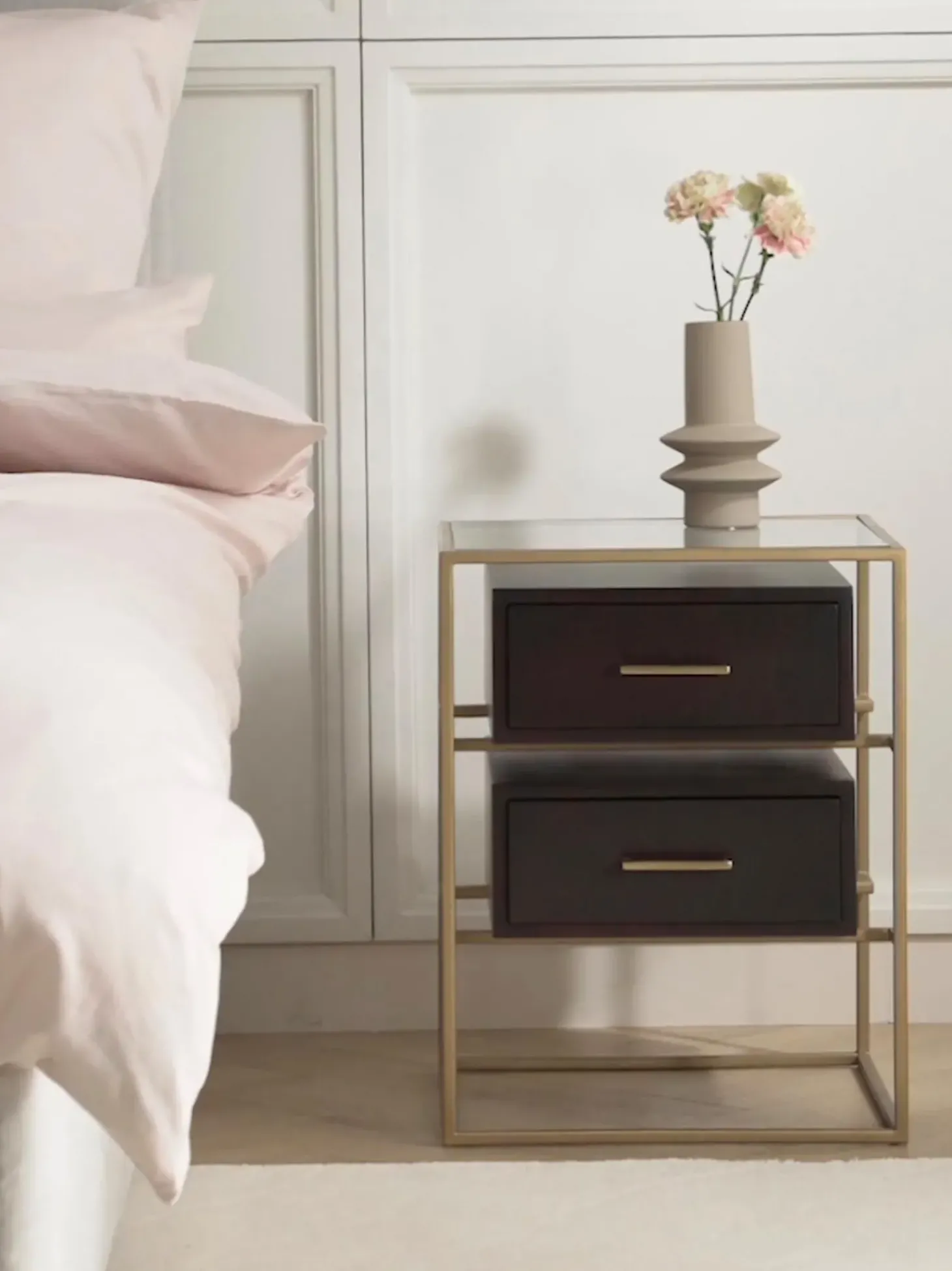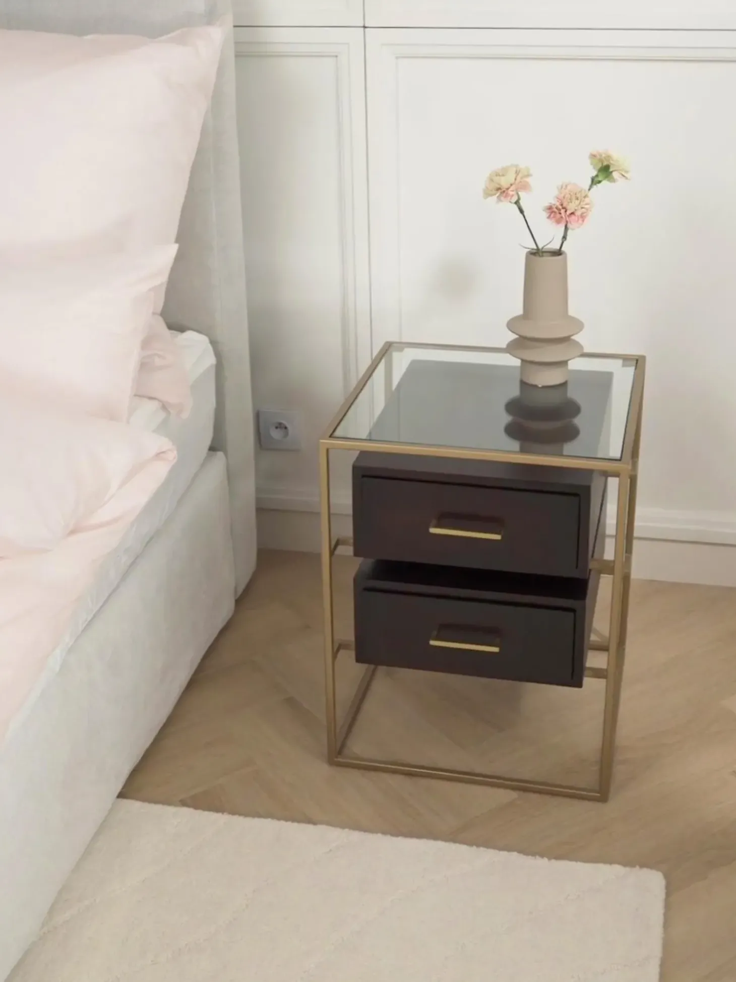 Esta Mesita De Noche Tiene Dos Cajones.