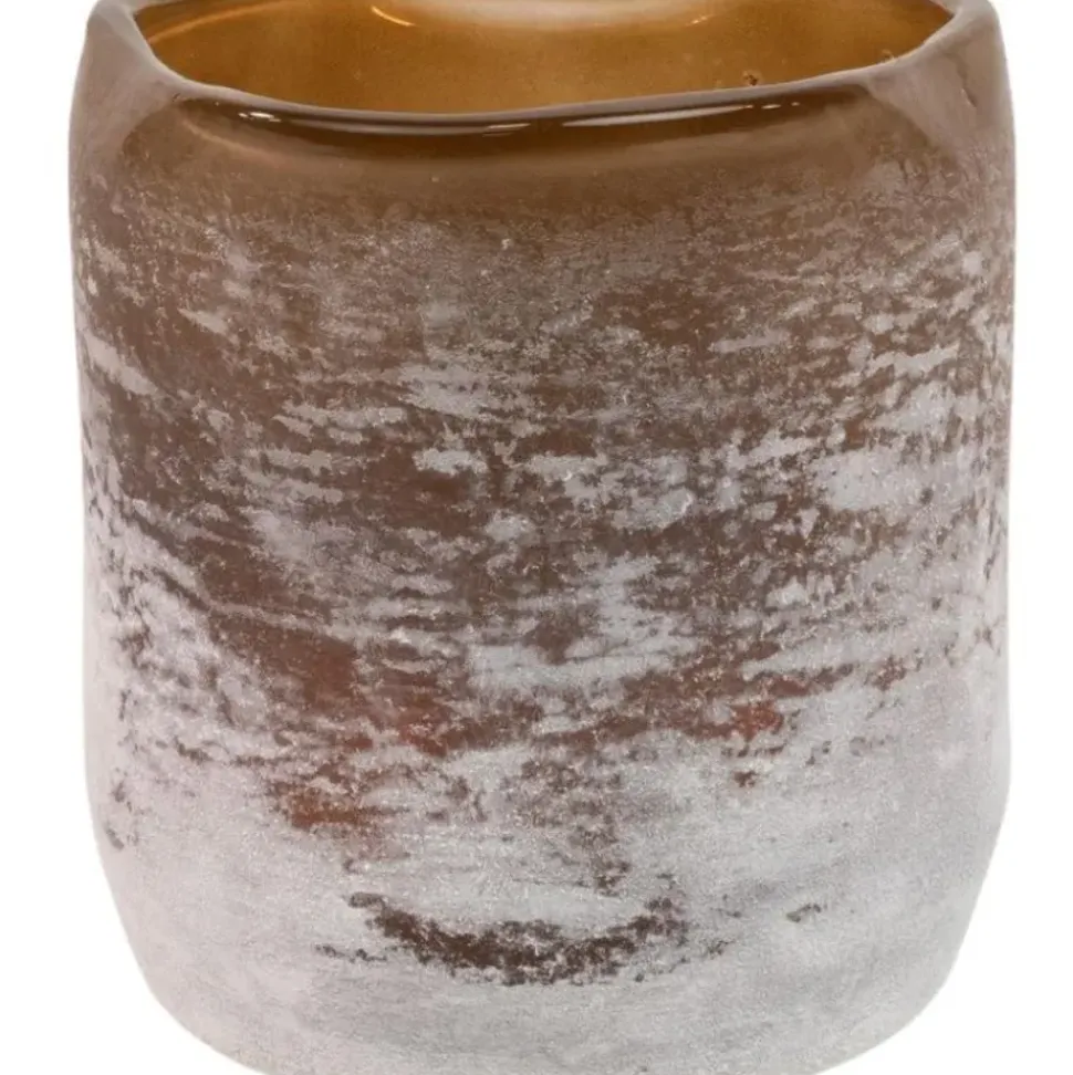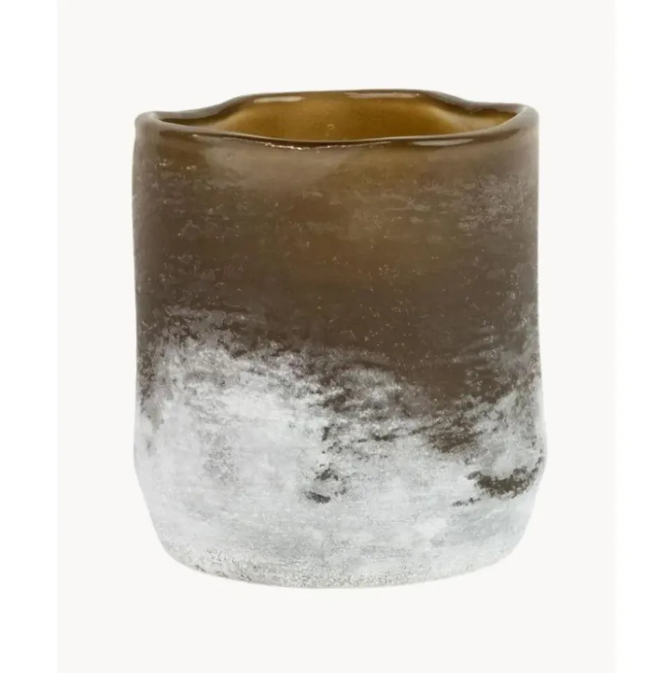 Portavelas De Vidrio Esmerilado Hecho Artesanalmente Con Un Borde De Forma Orgu00E1Nica En La Parte Superior. Cada Portavelas Es U00Fanico Y Emite Una Luz Cu00E1Lida Y Acogedora.
