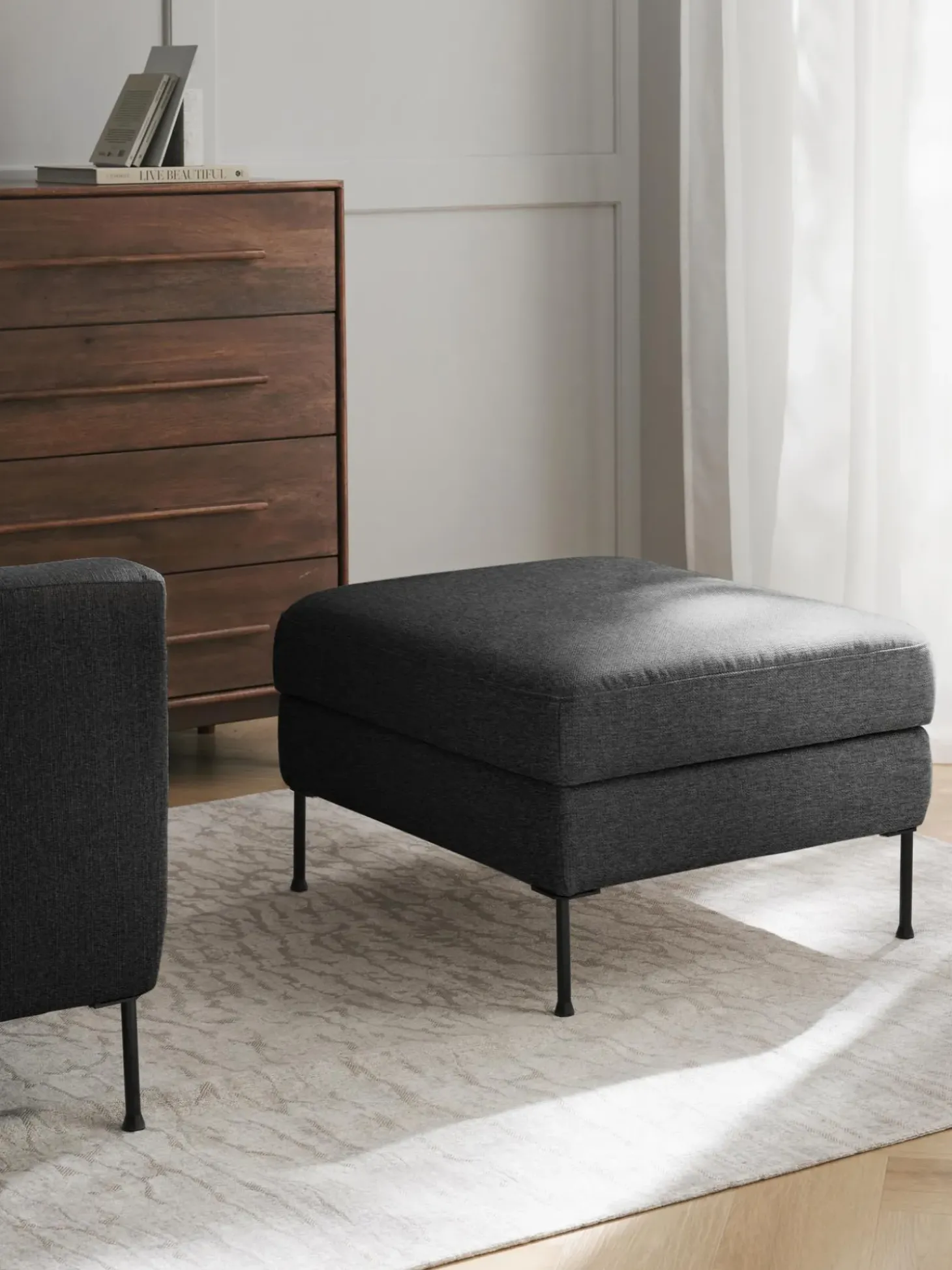 Reposapies Puf Cucita, Con Espacio De Almacenamiento