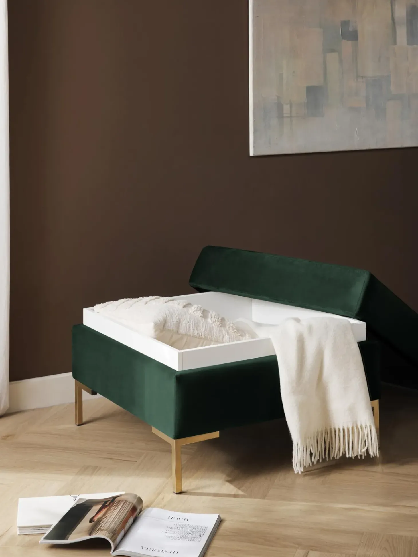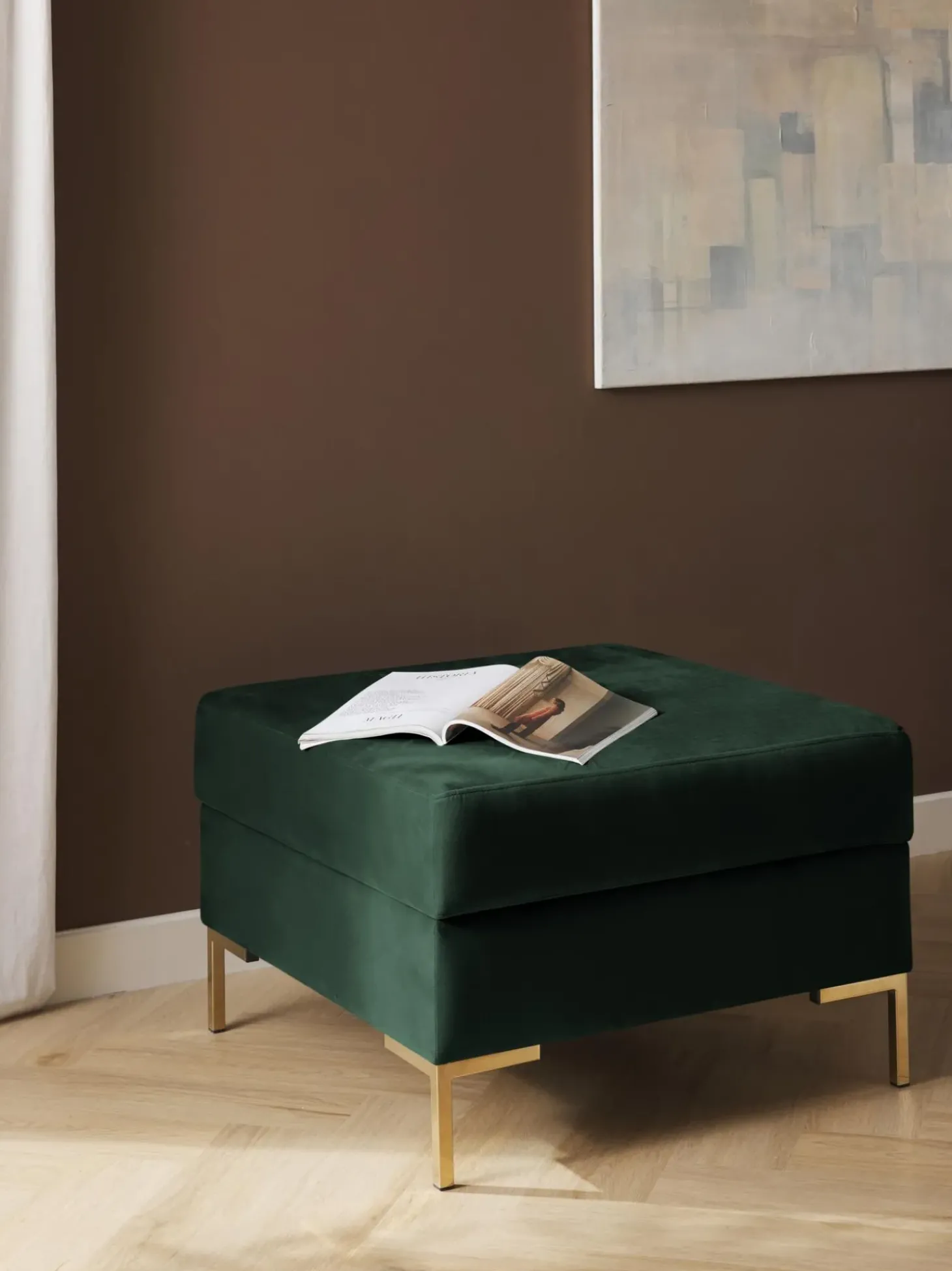 Reposapies Puf De Terciopelo Luna, Con Espacio De Almacenamiento