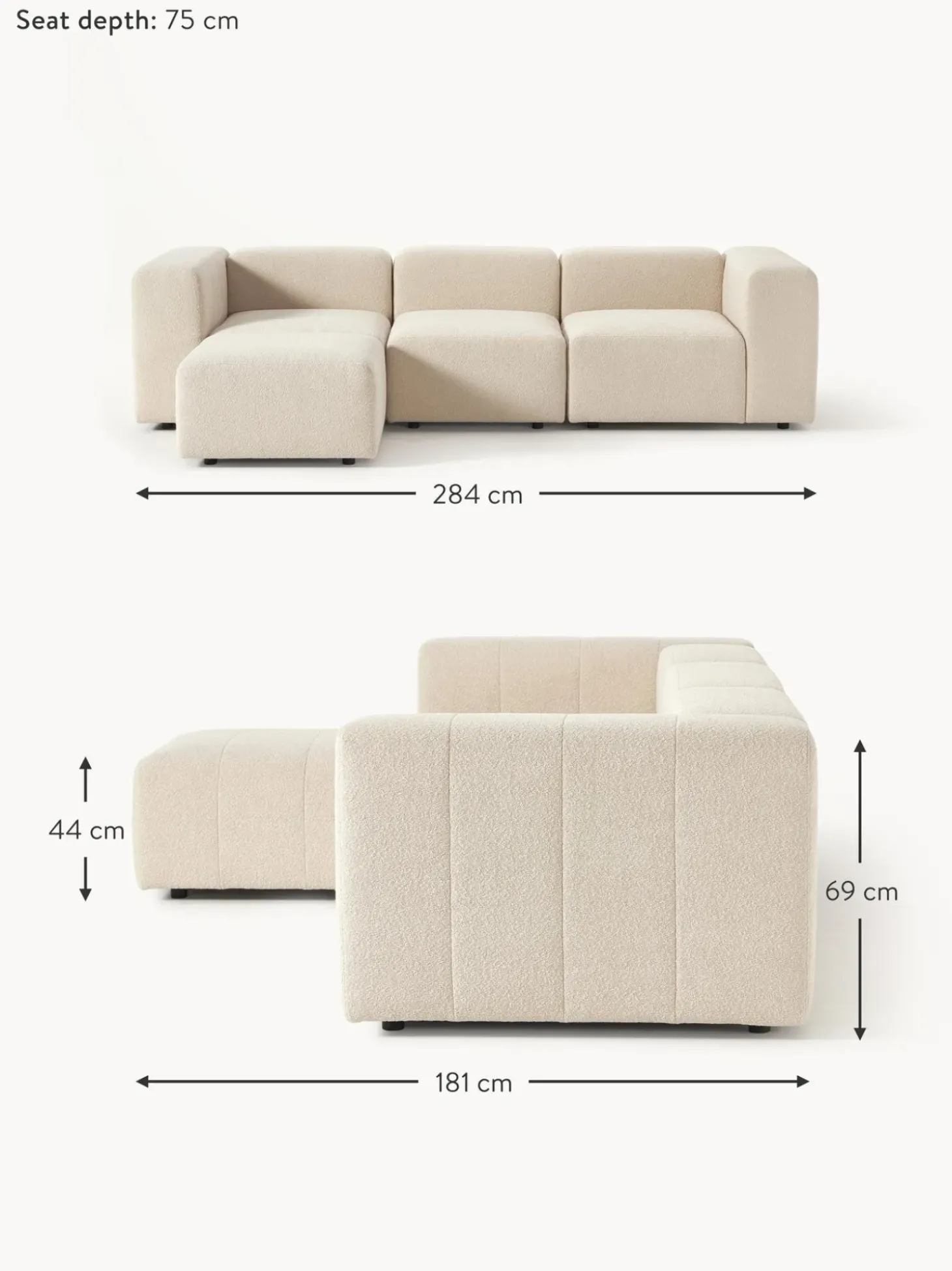 Sofa Modular Boucle Lena (4 Plazas), Con Reposapies
