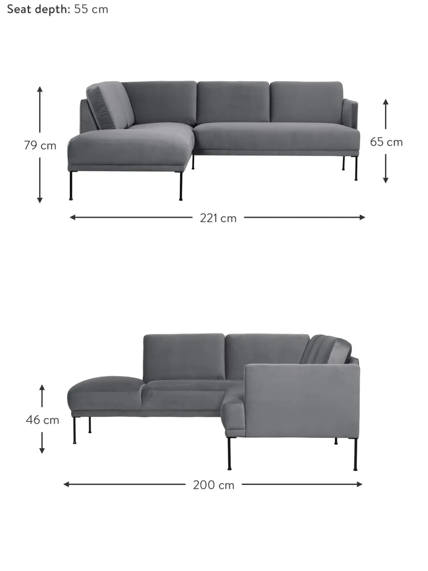 | Tamano | an 221 x f 200 cm, chaise longue derecha, an 221 x f 200 cm, chaise longue izquierda |