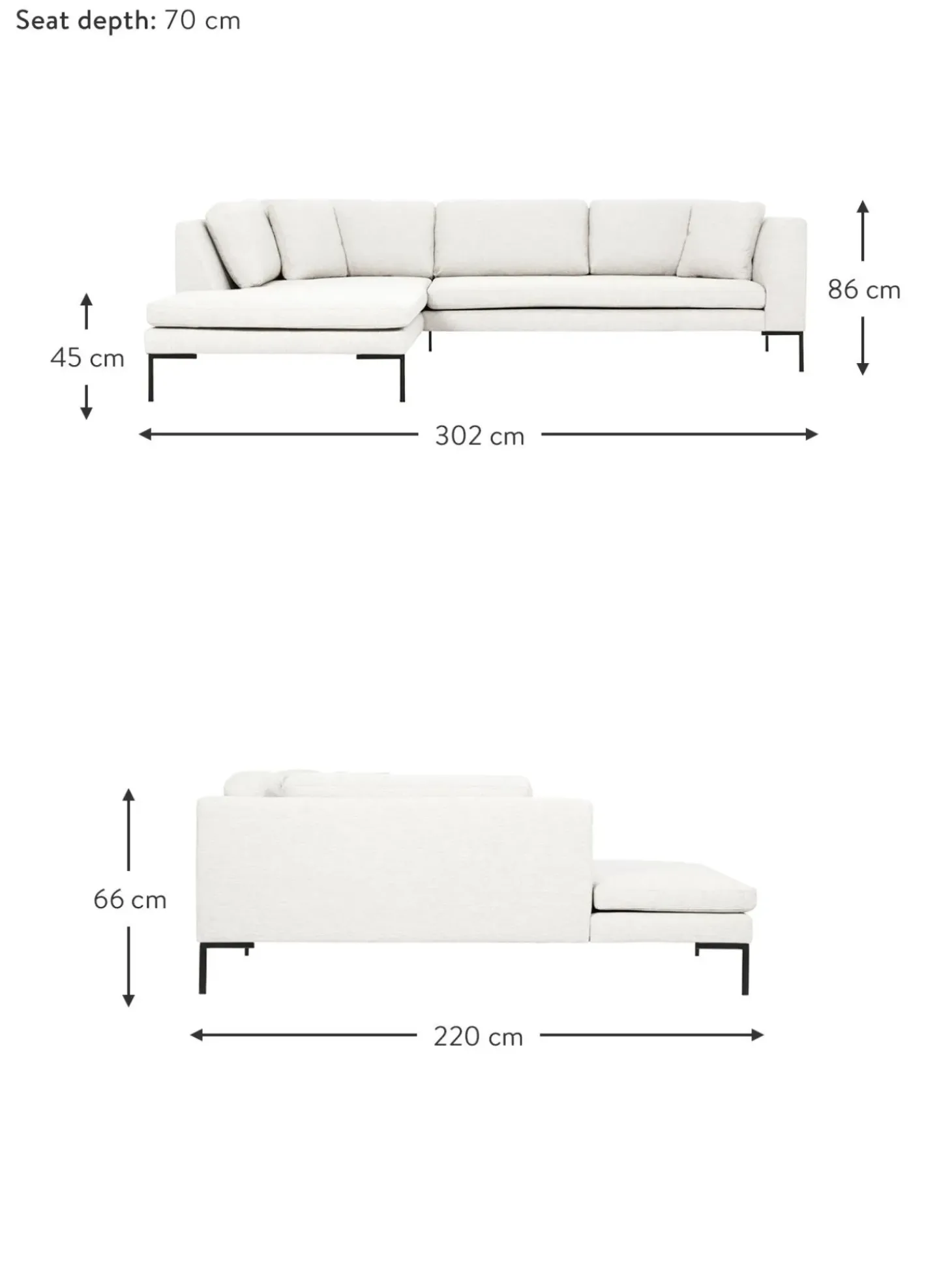 | Tamano | an 302 x f 220 cm, chaise longue derecha, an 302 x f 220 cm, chaise longue izquierda |