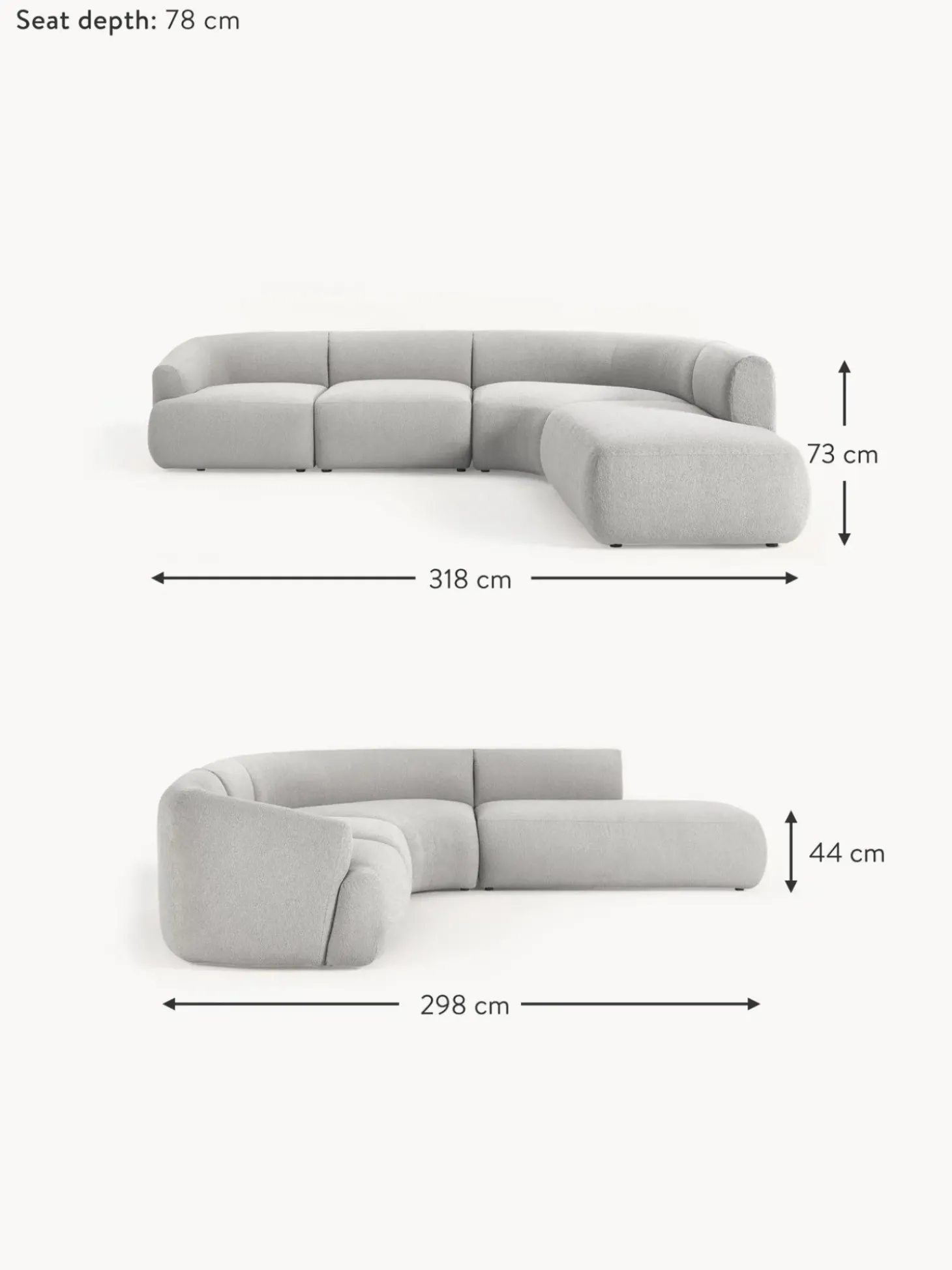 | Tamano | an 318 x f 298 cm, chaise longue derecha, an 318 x f 298 cm, chaise longue izquierda |