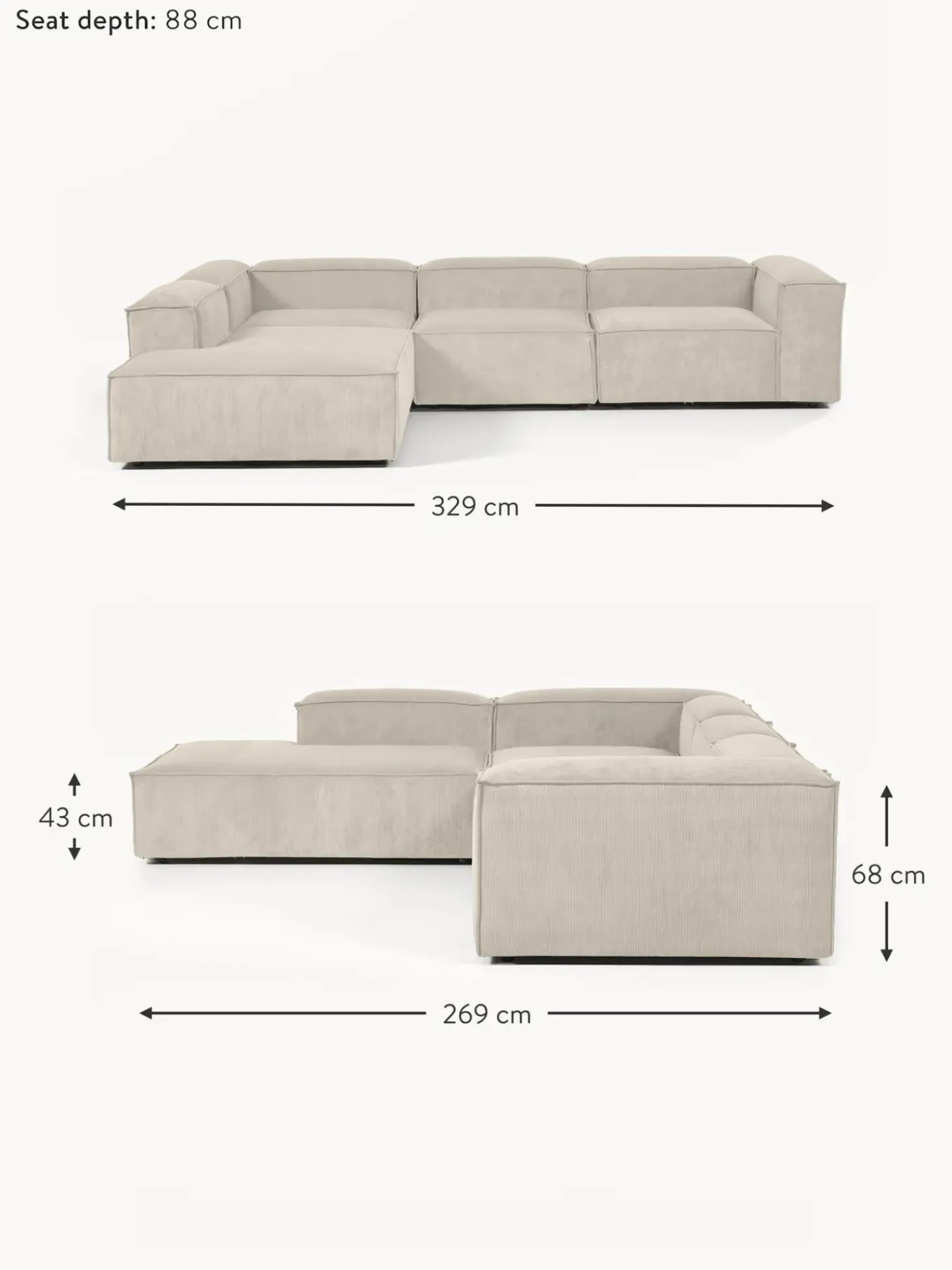| Tamano | an 329 x f 269 cm, chaise longue derecha, an 329 x f 269 cm, chaise longue izquierda |