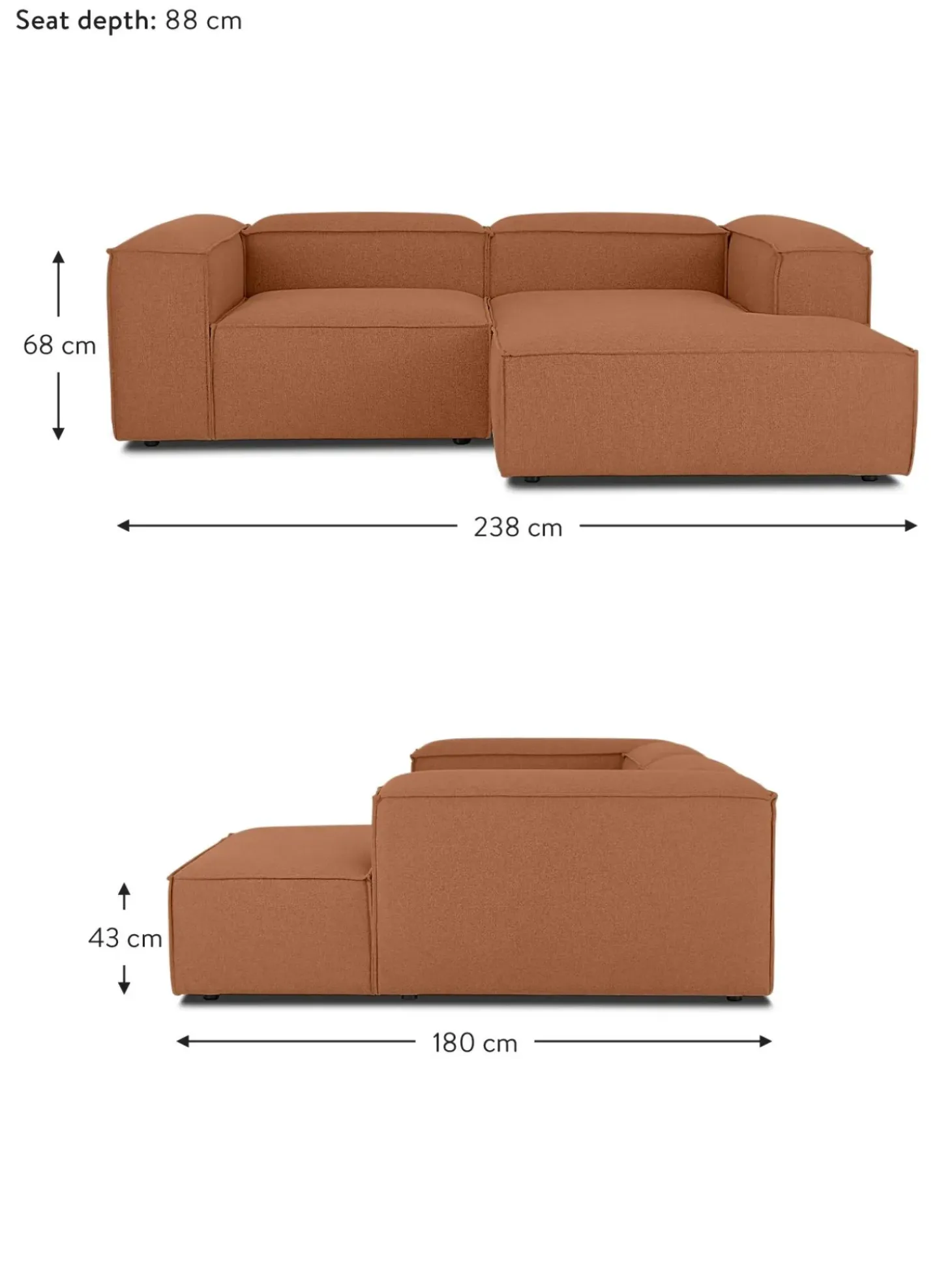 | Tamano | an 238 x f 180 cm, chaise longue derecha, an 238 x f 180 cm, chaise longue izquierda |