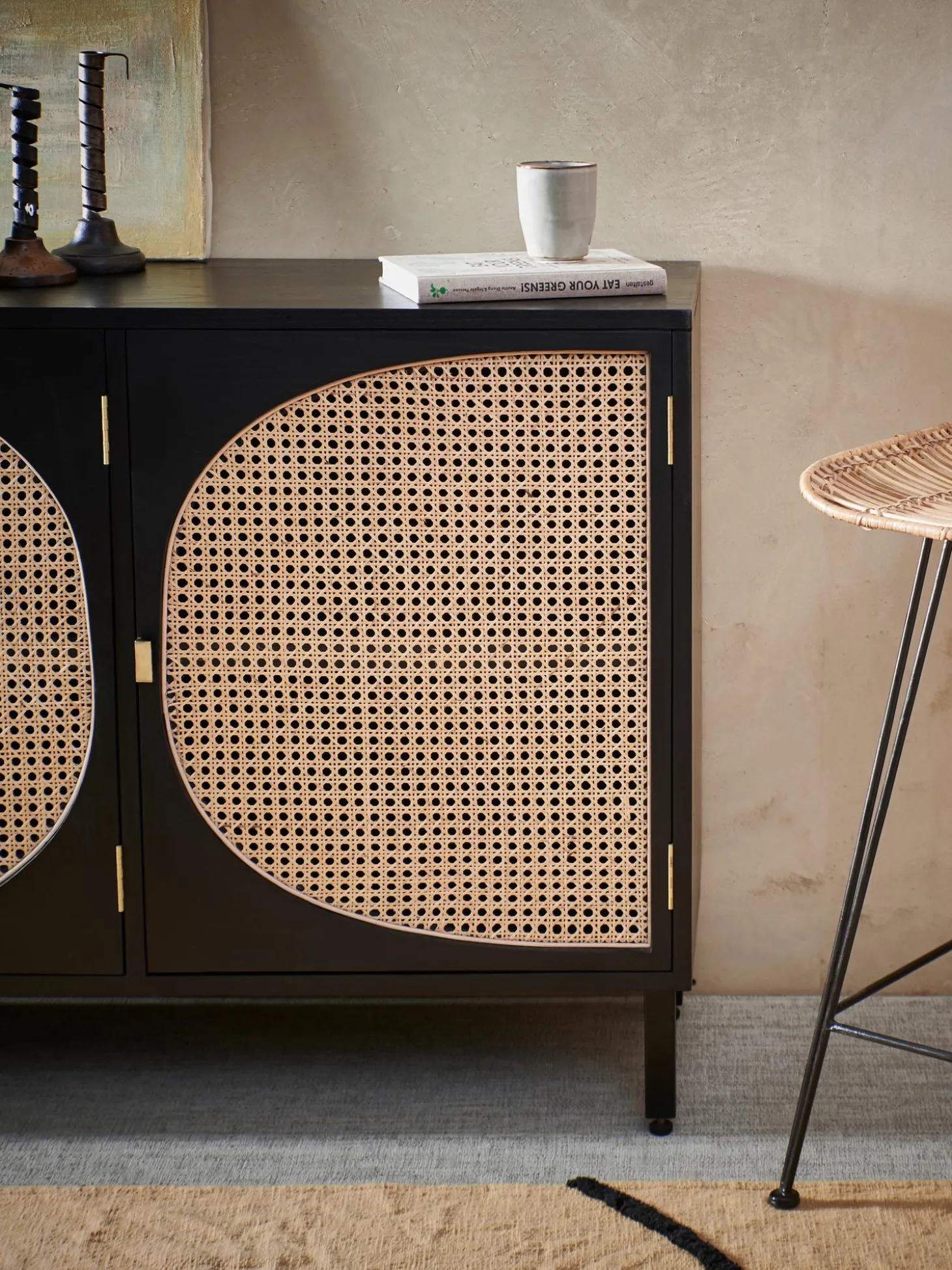 Aparador Artesanal De Madera Sukai Y Tejido Vienes Lizzie