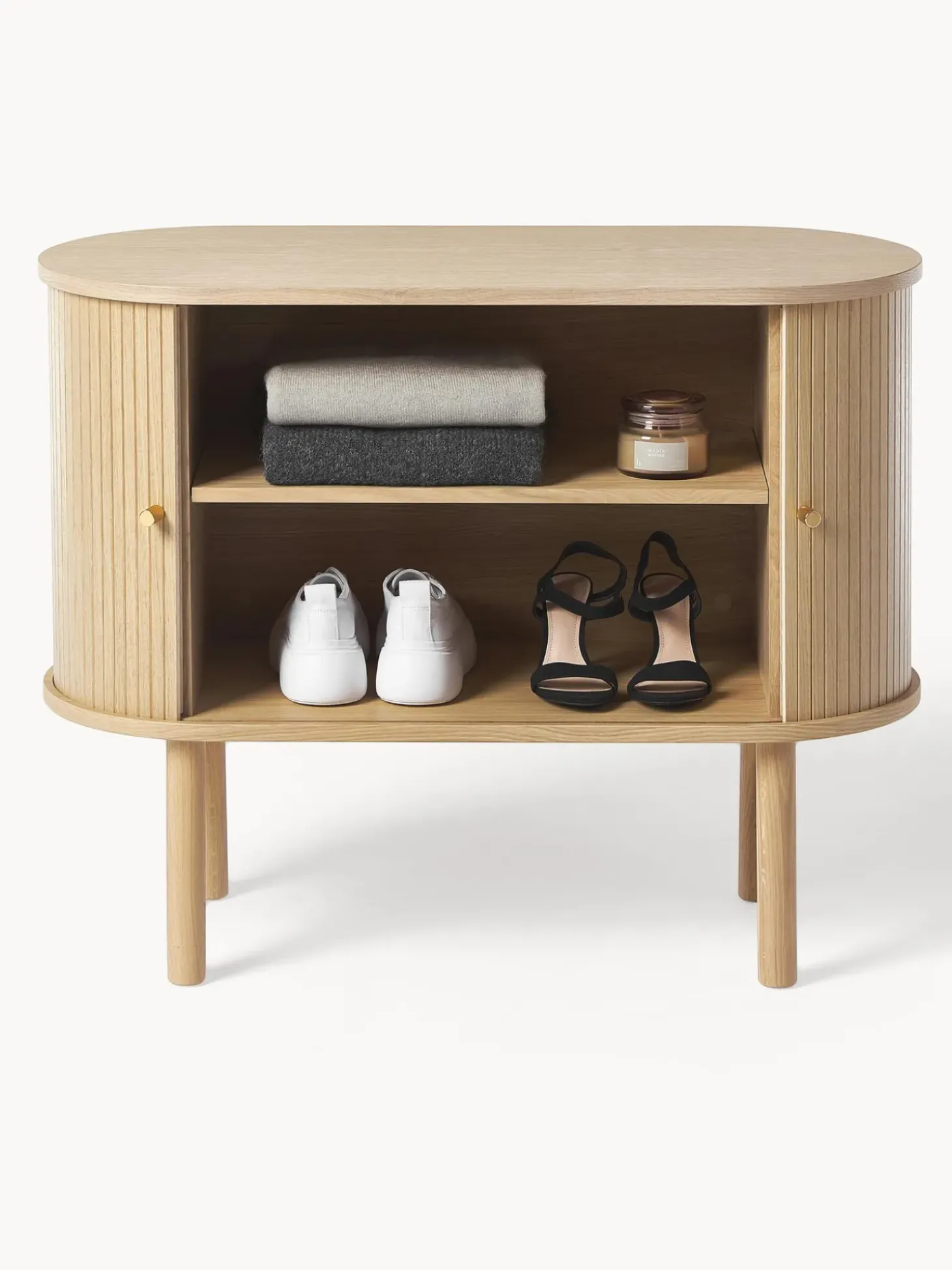 Los Materiales Naturales Son Actualmente Los Protagonistas Del Interior! La Colecci Calary Estu00E1 Fabricada Con Madera Sostenible Certificada Fsc. Una Estructura Ondulada Decorativa Adorna Los Frentes De Las Puertas Y Hace Que El Producto Sea Un Verdadero Punto Culminante De Diseu00F1O Y Atractivo! Adem, Sus Finas Patas Tambiu00E9N Hacen Que El Diseu00F1O Luzca Minimalista Y Limpio.Nneste Aparador Calary Tiene Dos Puertas Correderas Y Dos Compartimentos.Nlos Estantes Son Ajustables En Altura Y, Por Lo Tanto, Se Adaptan A Tus Necesidades Personales.Nnhecho En Europa.