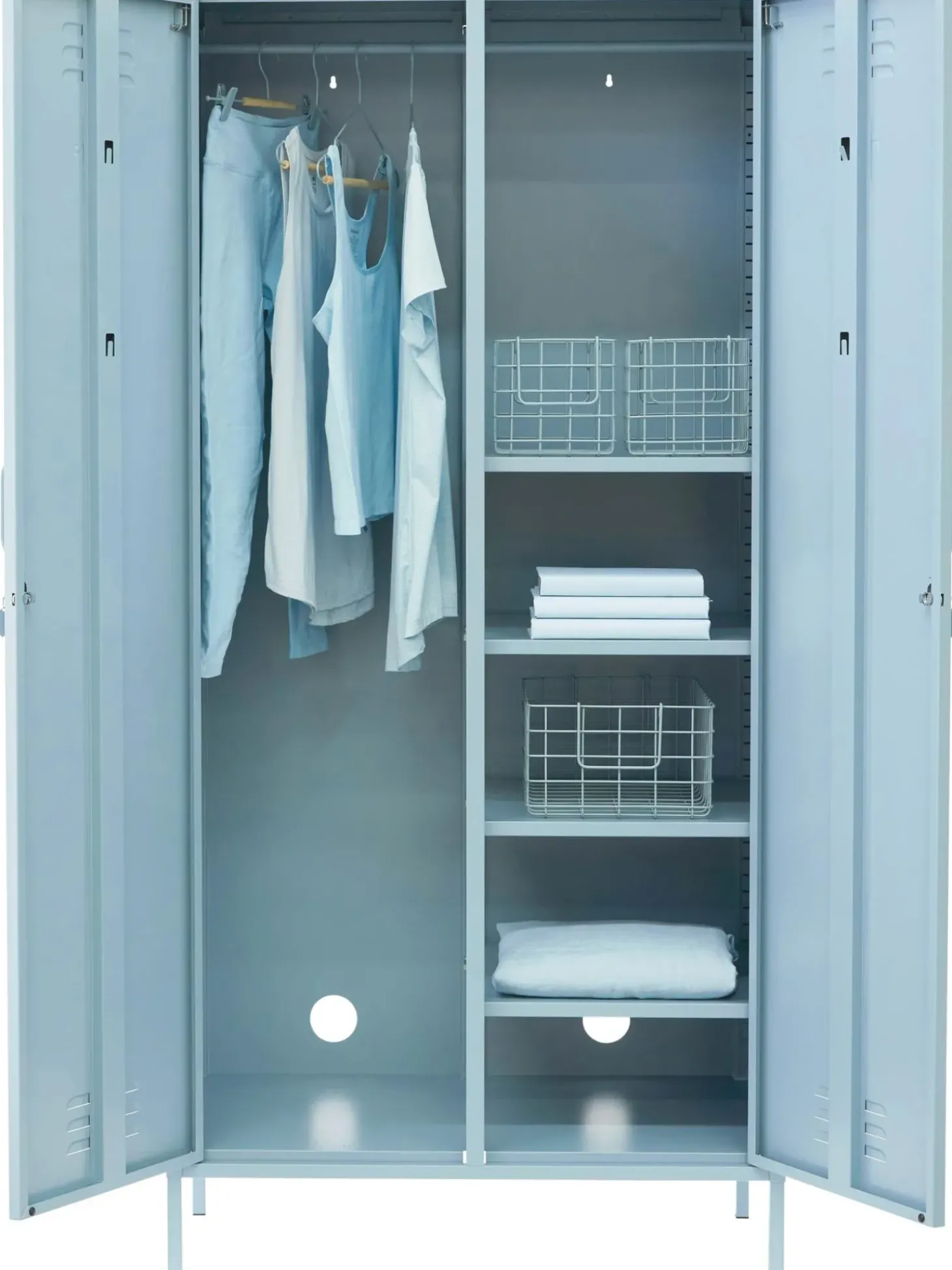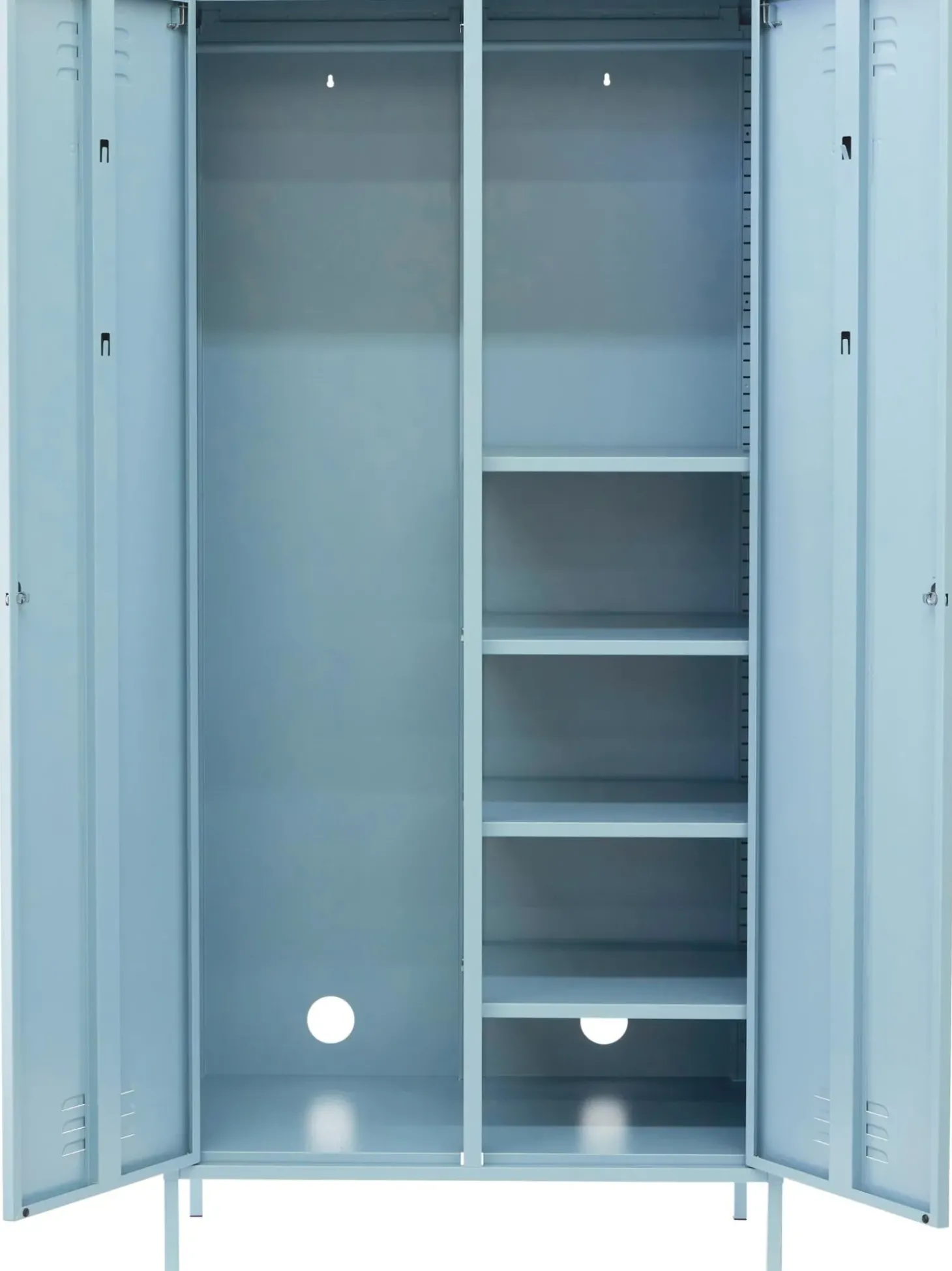 El Armario Tiene Dos Barras Para Colgar Ropa Y Cuatro Estantes Regulables En Altura.