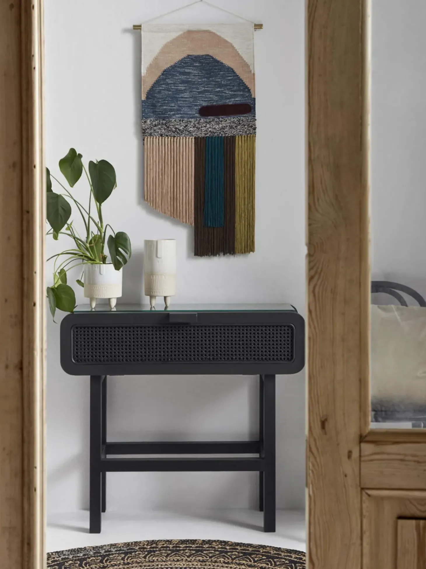 Consola De Madera De Teca Y Ratan Merge