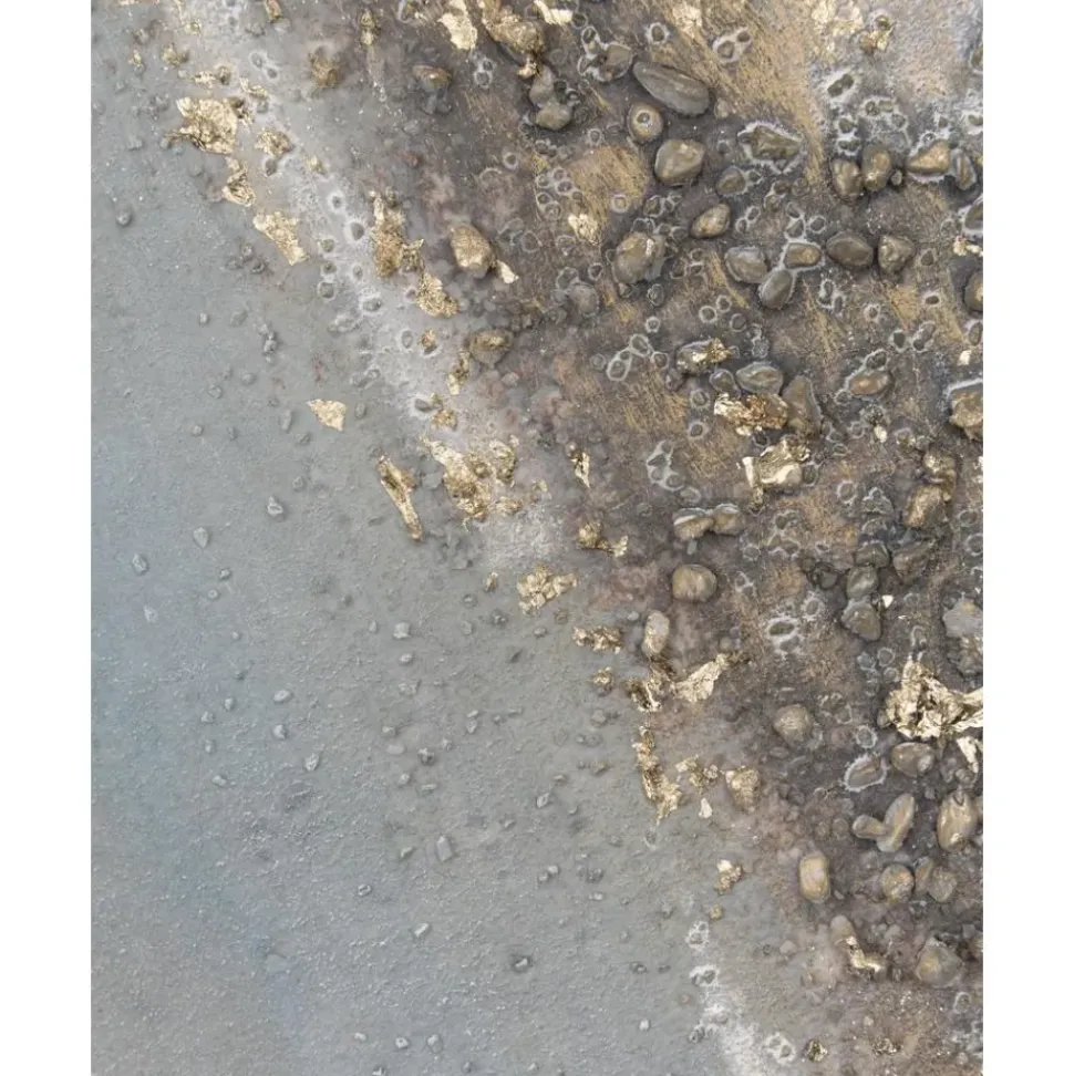 Cuadro En Lienzo Abstracto E Impresionista En Colores Naturales Con Marco De Madera Maciza Pintado Completamente A Mano, Impresiona Con Sus Pequeu00F1As Piedras Y Elementos Dorados