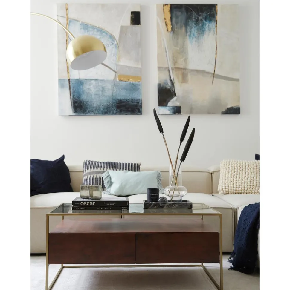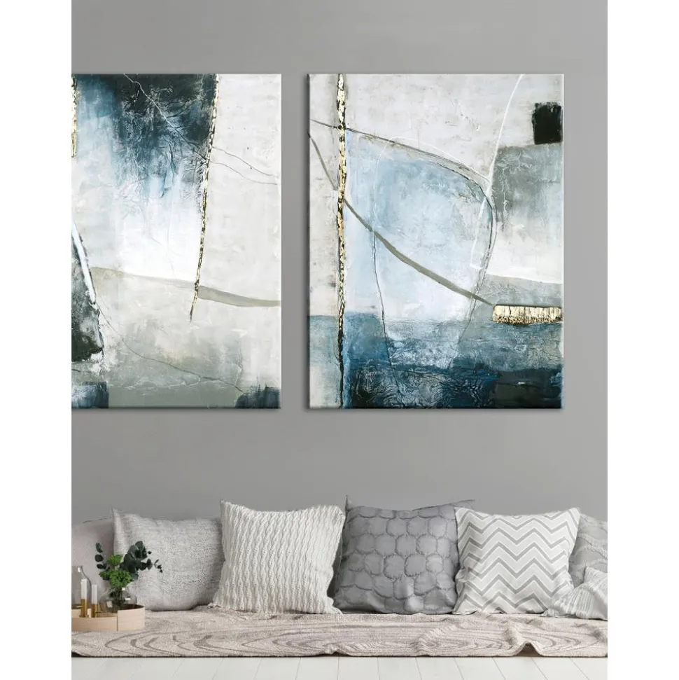 Cuadro En Lienzo Pintado A Mano Golden Blue Ii
