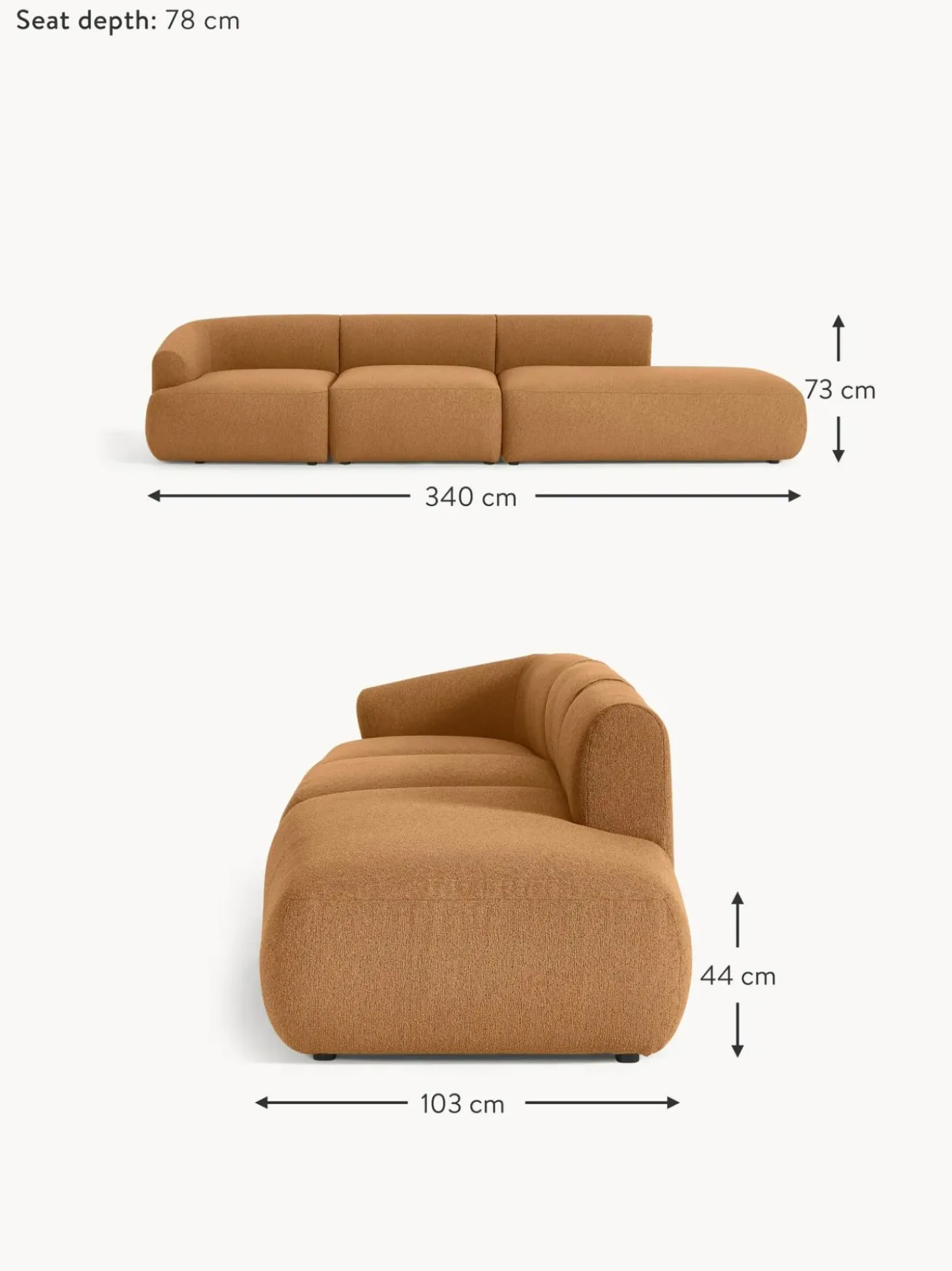 | Tamano | an 340 x f 103 cm, modulo esquina derecha, an 340 x f 103 cm, modulo esquina izquierda |