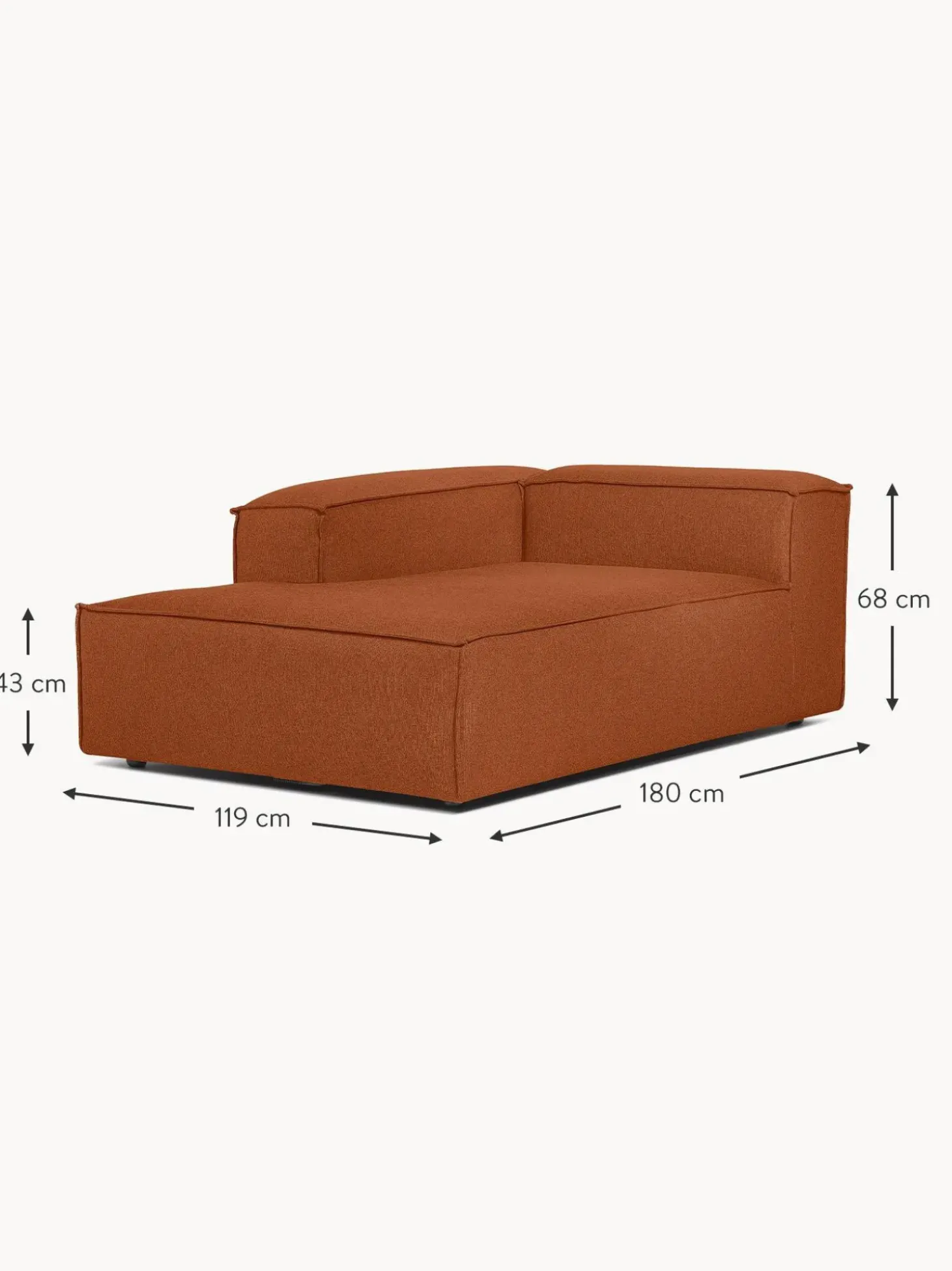 | Tamano | an 119 x f 180 cm, chaise longue derecha, an 119 x f 180 cm, chaise longue izquierda |