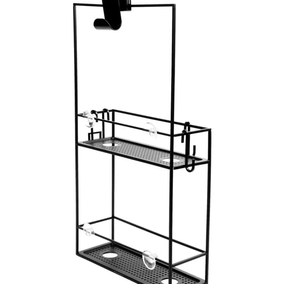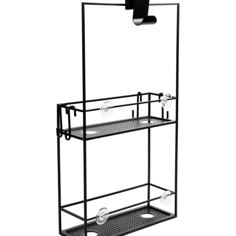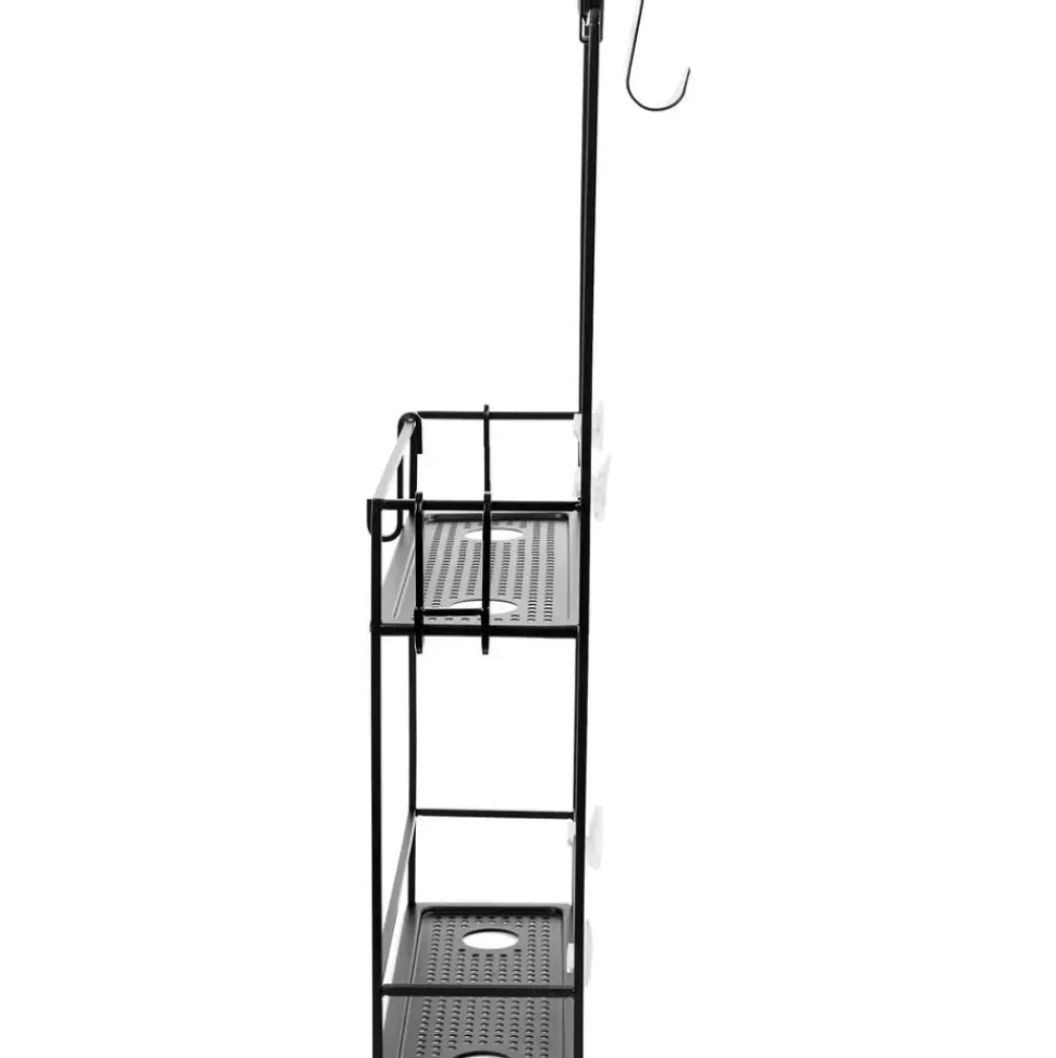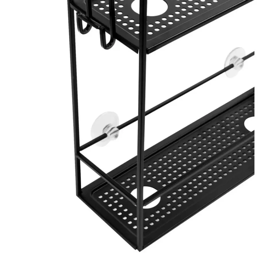– Estante De Ducha Con 2 Estantes Y 4 Ganchosn- 4 Aberturas Para Almacenar Botellas Boca Abajo Para Facilitar La Dosificacin- No Requiere Hardware De Montaje