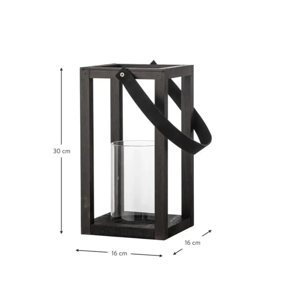 El Farolillo De Vidrio Lyra De Bloomingville Es Un Hermoso Farolillo Hecho De Pino Negro Con Un Atractivo Aspecto Natural. Tiene Un Inserto De Vidrio Para Velas Y Un Asa De Cuero Para Que Sea Fu00E1Cil De Colocar En Tu Jardu00Edn.