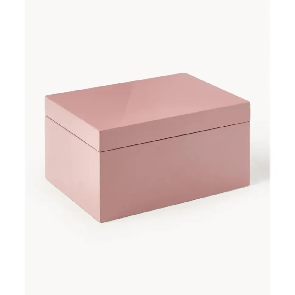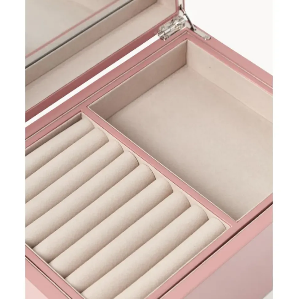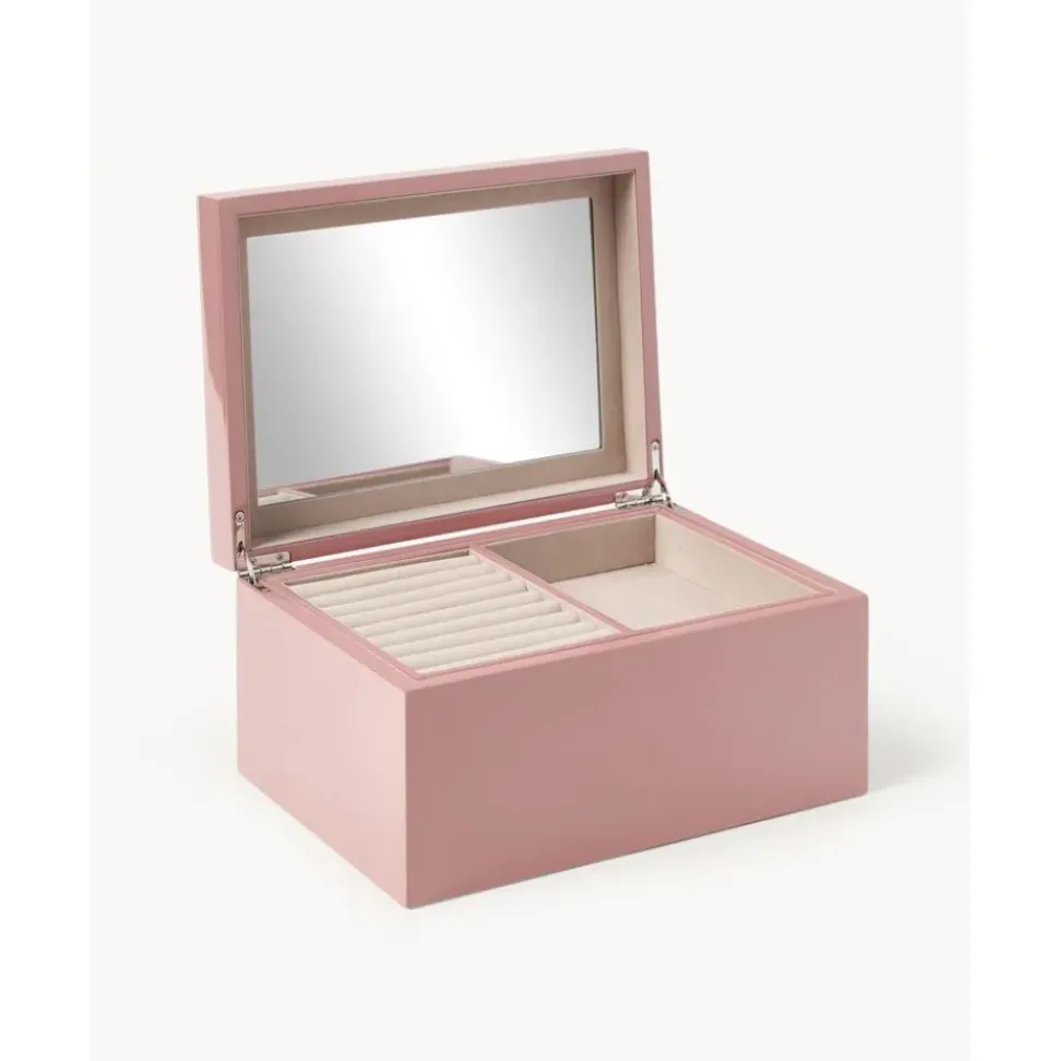 Joyero Con Cerradura Y Espejo Dentro De La Tapadera. El Interior Es Extrau00Edble Y Esta Formado Por Dos Compartimentos Para Anillos, Pulseras Y Colgantes. Con Varias Capas De Barniz Brillante Este Joyero Seru00E1 Tu Favorito Gracias A Su Diseu00F1O Atemporal Y Elegante.