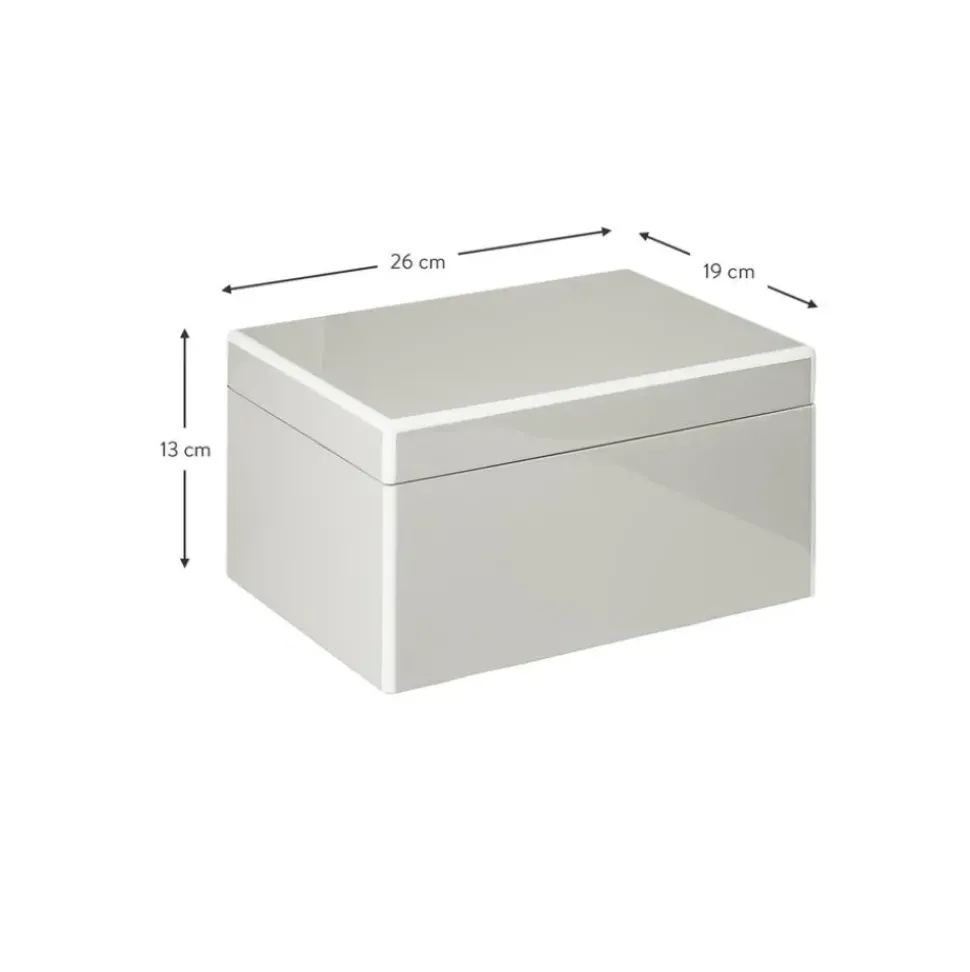 Joyero Con Cerradura Y Espejo Dentro De La Tapadera. El Interior Es Extrau00Edble Y Esta Formado Por Dos Compartimentos Para Anillos, Pulseras Y Colgantes. Con Varias Capas De Barniz Brillante Este Joyero Seru00E1 Tu Favorito Gracias A Su Diseu00F1O Atemporal Y Elegante.