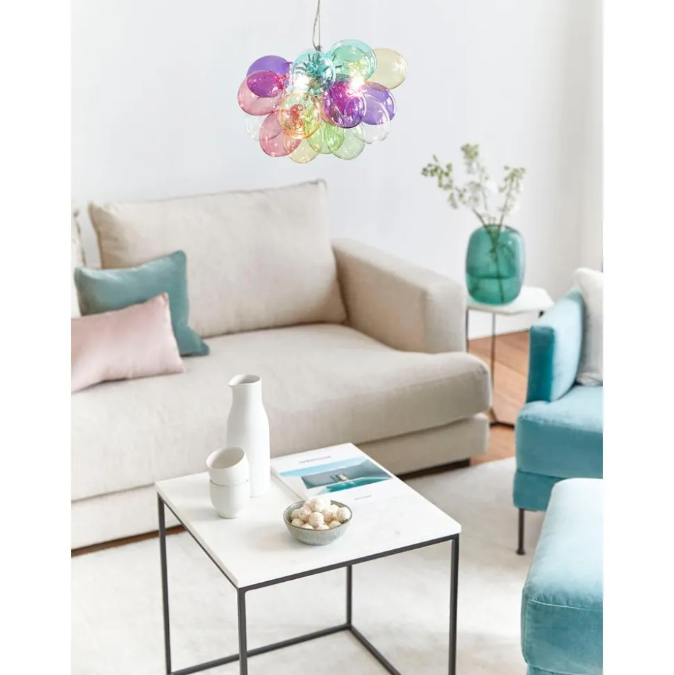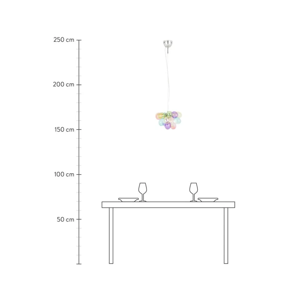 Lu00E1Mpara De Techo De Diseu00F1O Con Esferas De Vidrio Ovaladas Sopladas Artesanalmente.Nnregulable Con Un Atenuador Y Bombilla Adecuados.Npara Una Iluminaci Adecuada, Recomendamos Utilizar Bombillas Led Con Un Mu00E1Ximo De 2U00A0W.Nperfecta Para Iluminar Mesas De Comedor Largas.