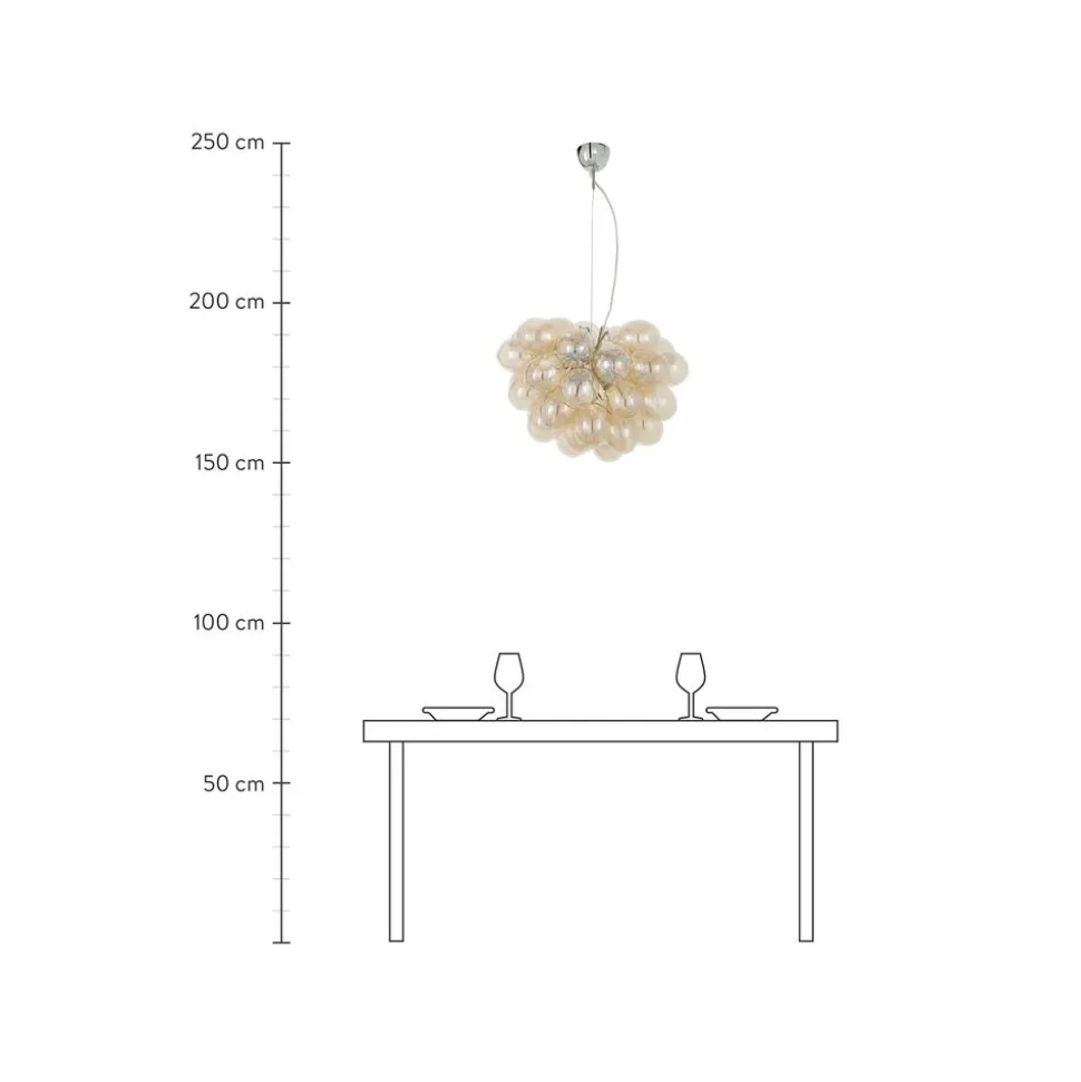 Lu00E1Mpara De Techo De Diseu00F1O Con Esferas De Vidrio Ovaladas Sopladas Artesanalmente.Nnhecho En Alemania.Nnregulable Con Un Atenuador Y Bombilla Adecuados.Npara Un Ambiente De Iluminaci Adecuado, Recomendamos Utilizar Bombillas Led Con Un Mu00E1Ximo De 2 Vatios.Nperfecta Para Iluminar Mesas De Comedor Largas.