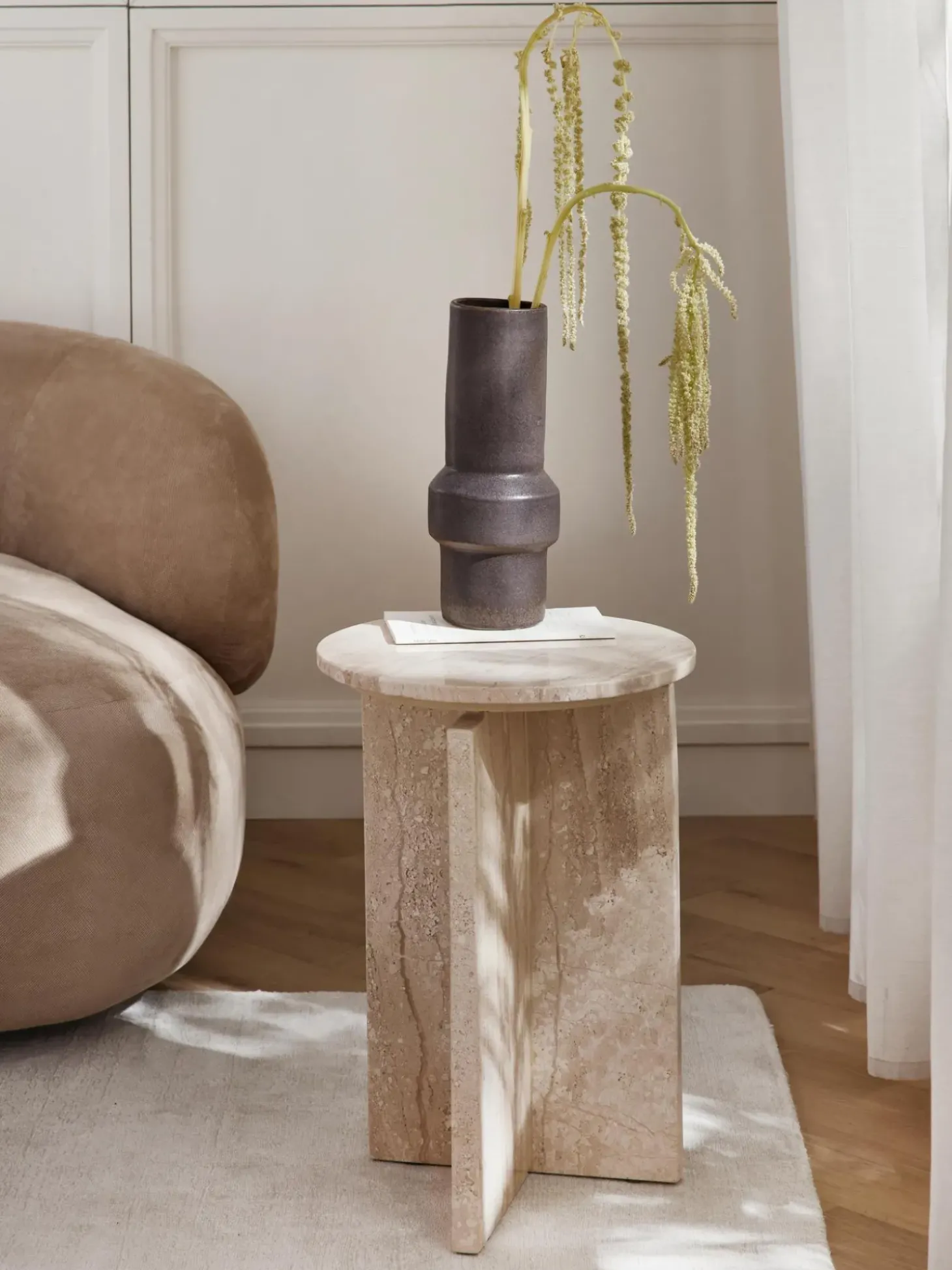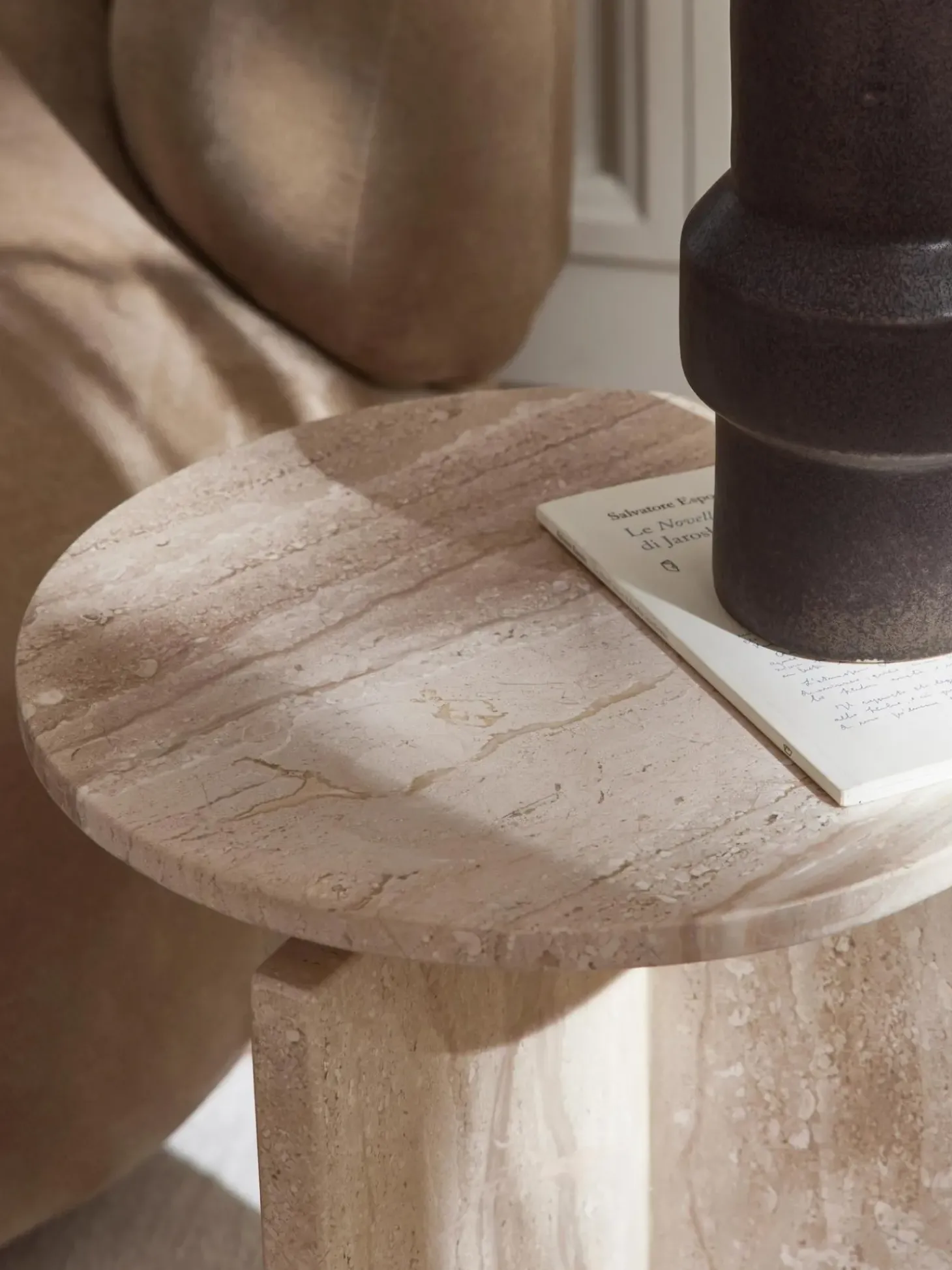 Mesa Auxiliar Redonda De Travertino Marisa