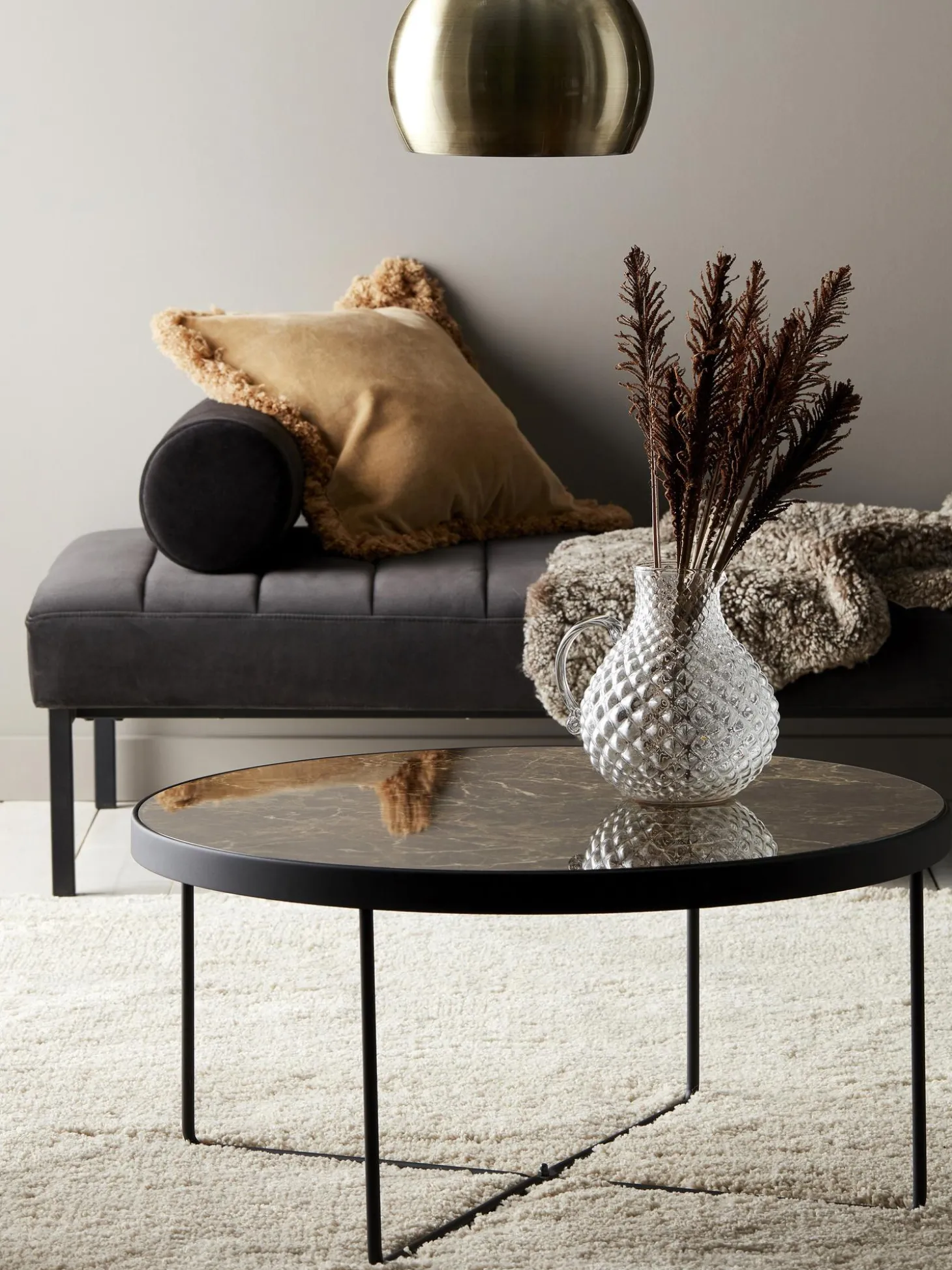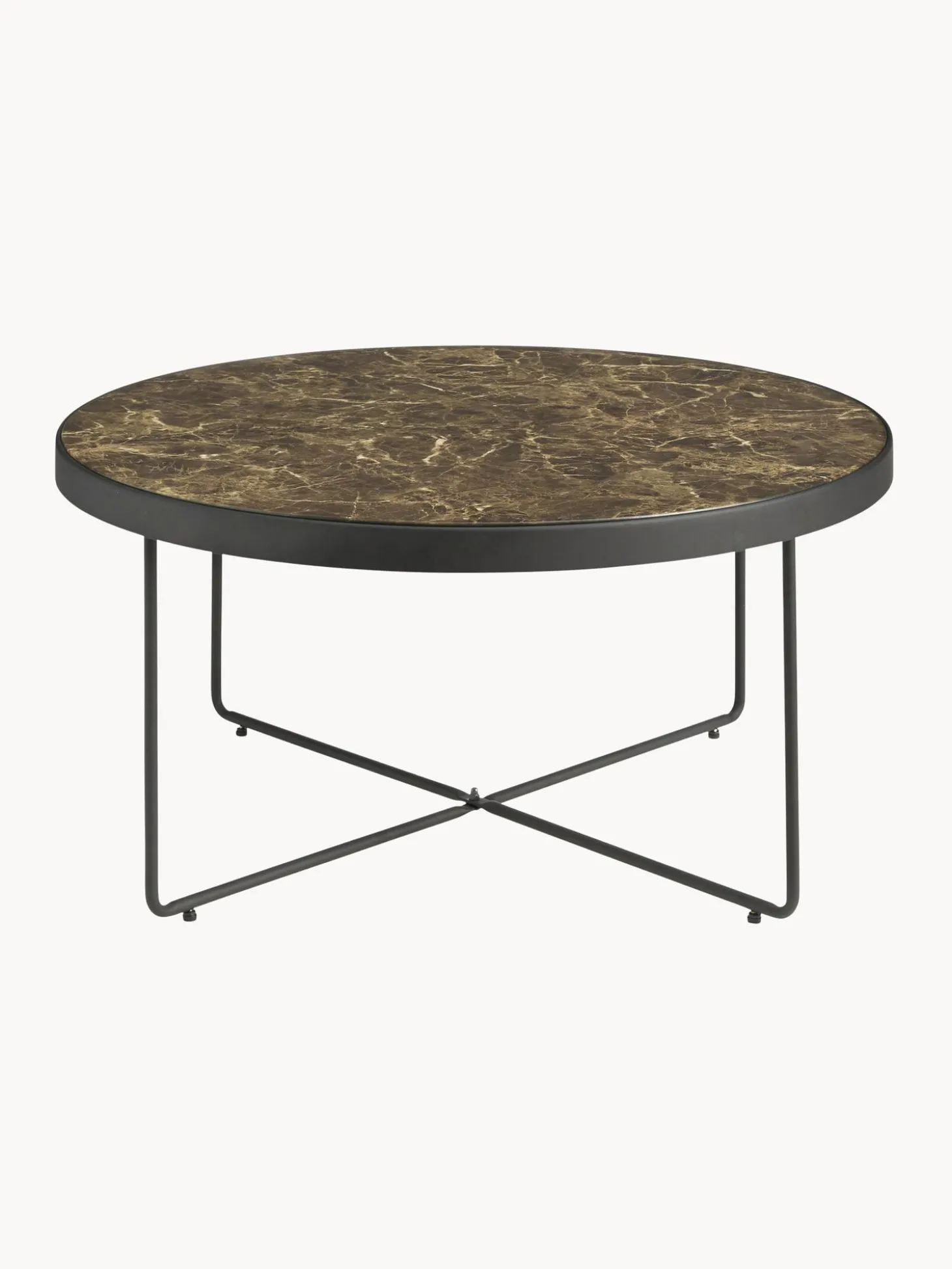Mesa De Centro Redonda De Metal Gellina, Con Tablero De Vidrio
