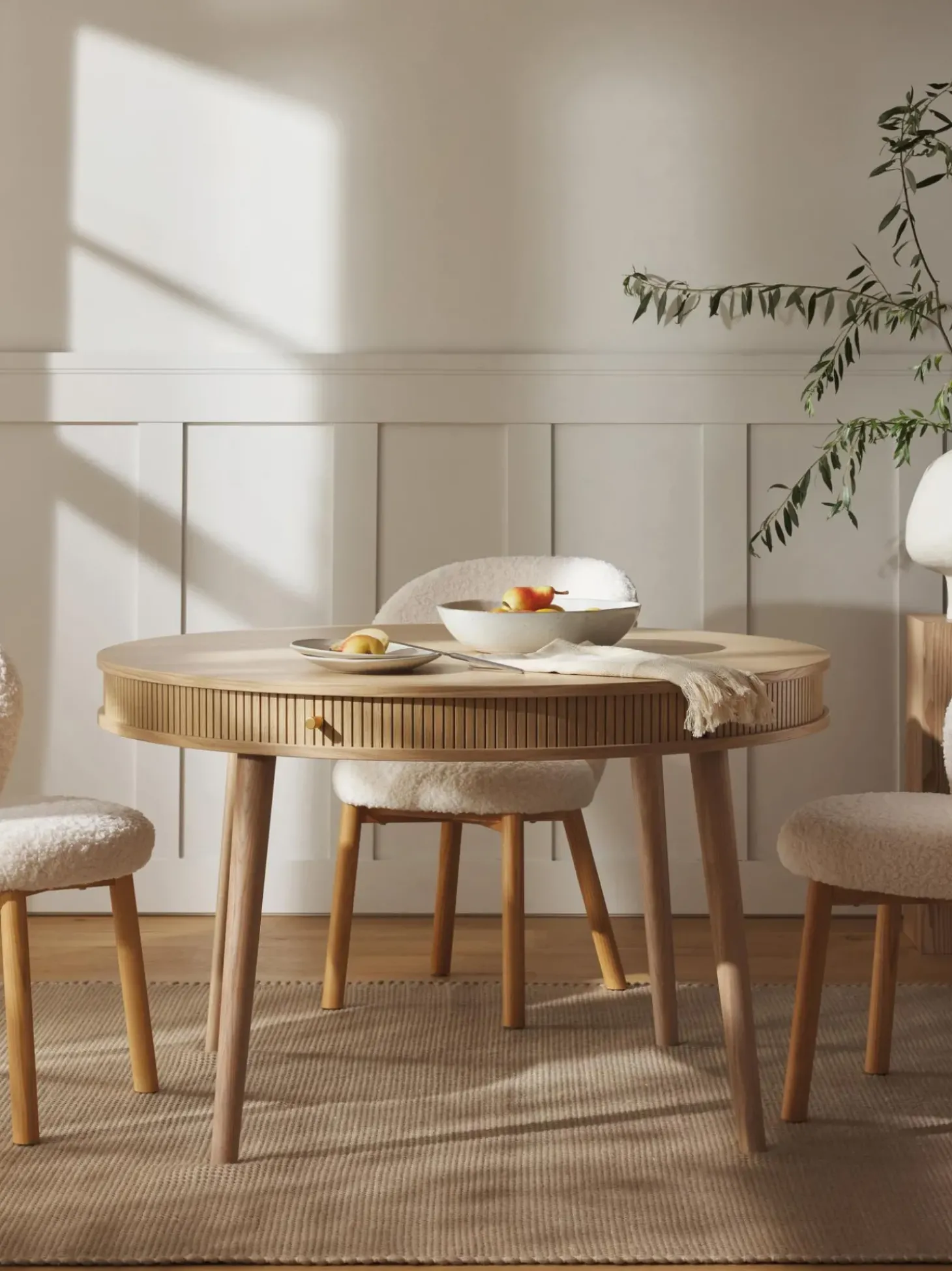 Mesa De Comedor Redonda Calary, Con Espacio De Almacenamiento