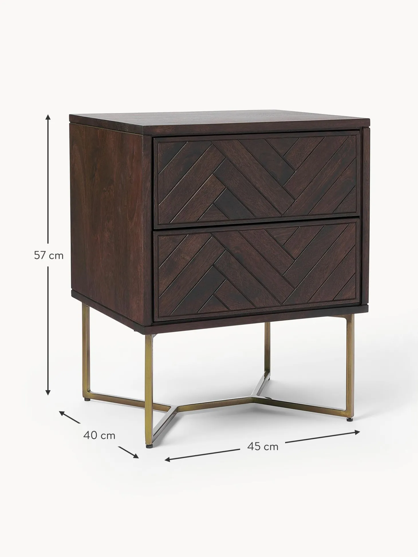 Mesilla De Noche De Madera De Mango Maciza Luca, Con Cajones