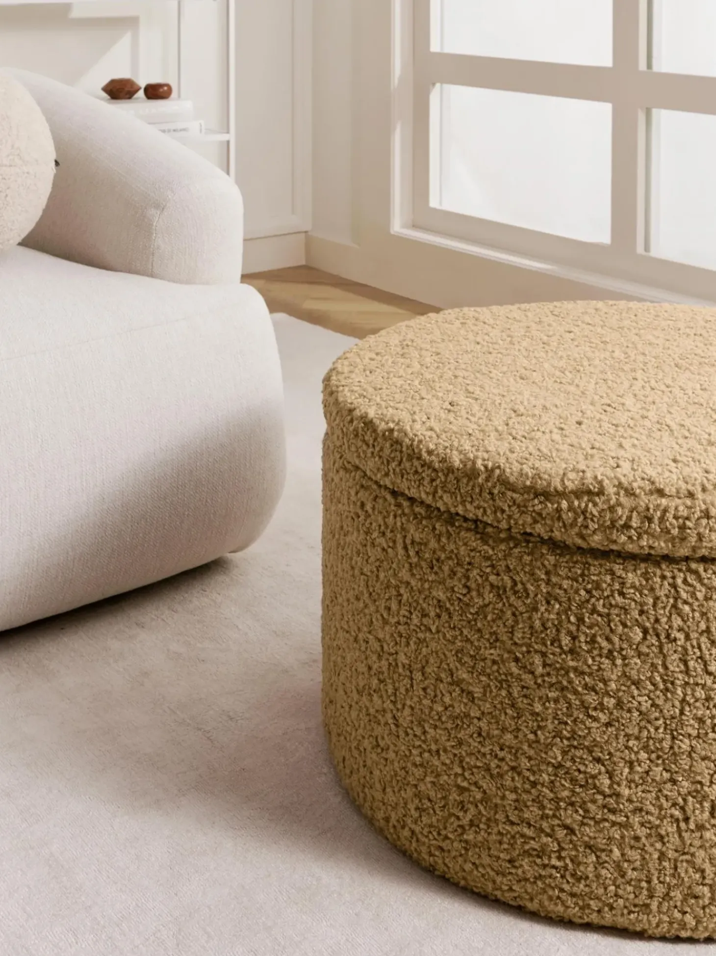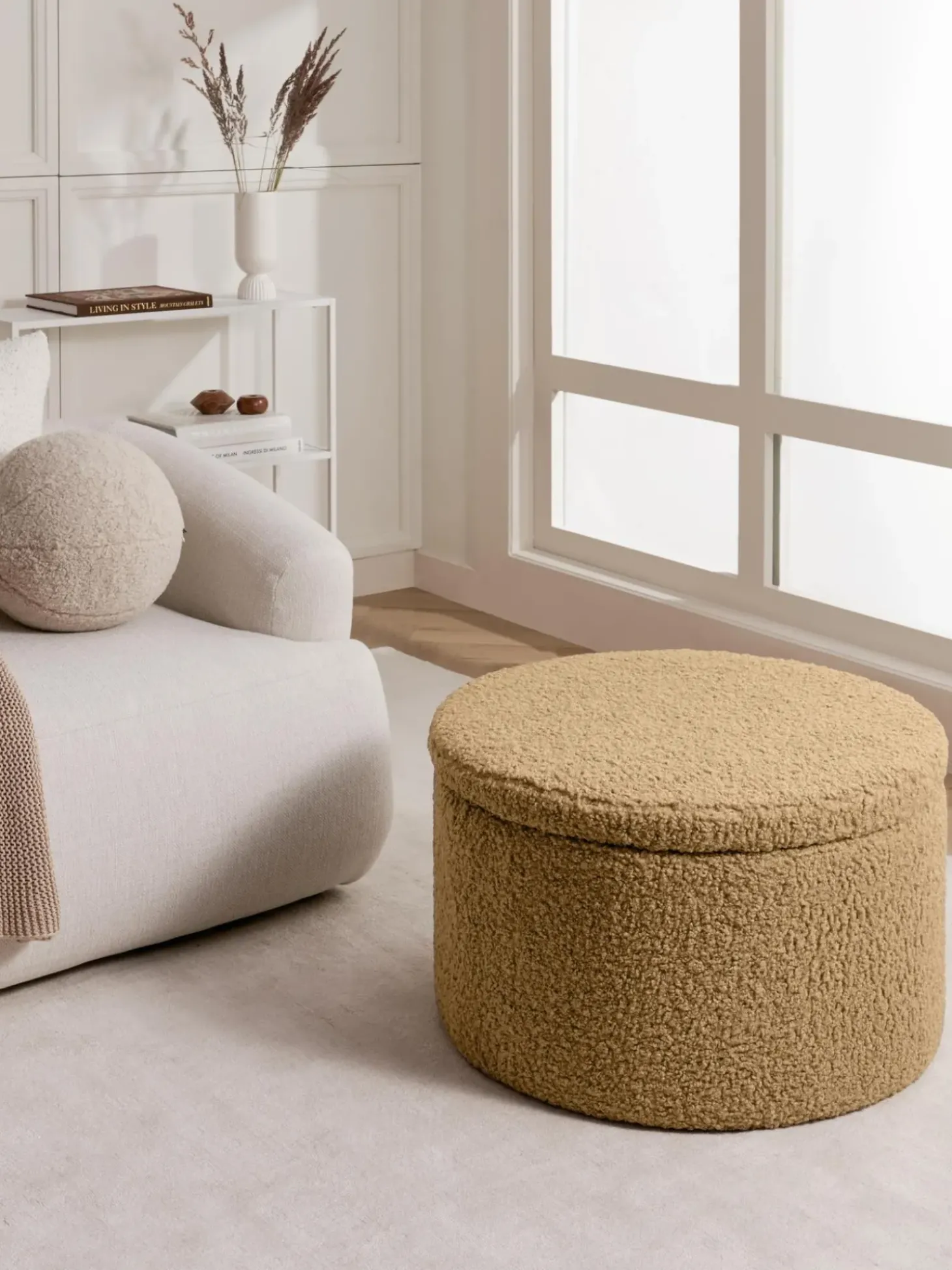 Puf Grande De Borreguillo Alida, Con Espacio De Almacenamiento