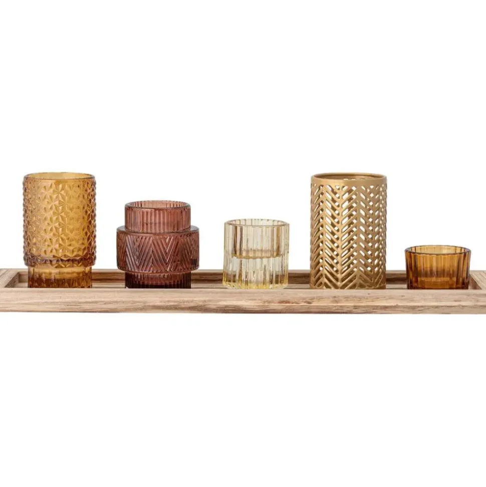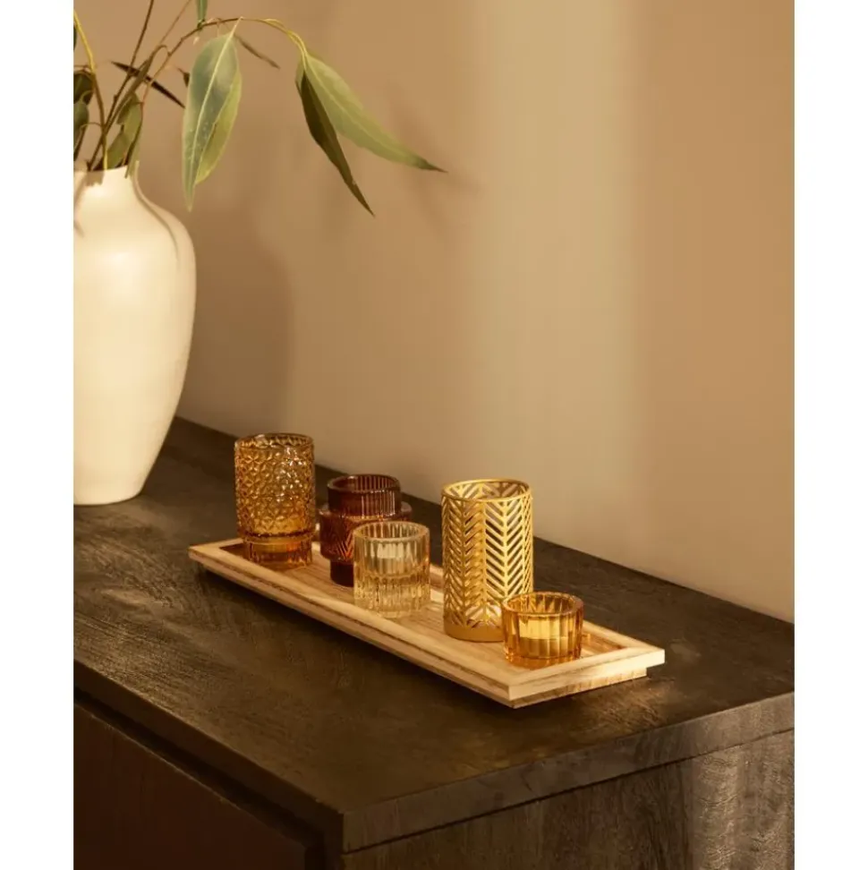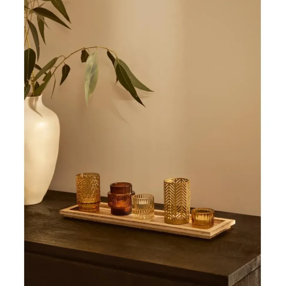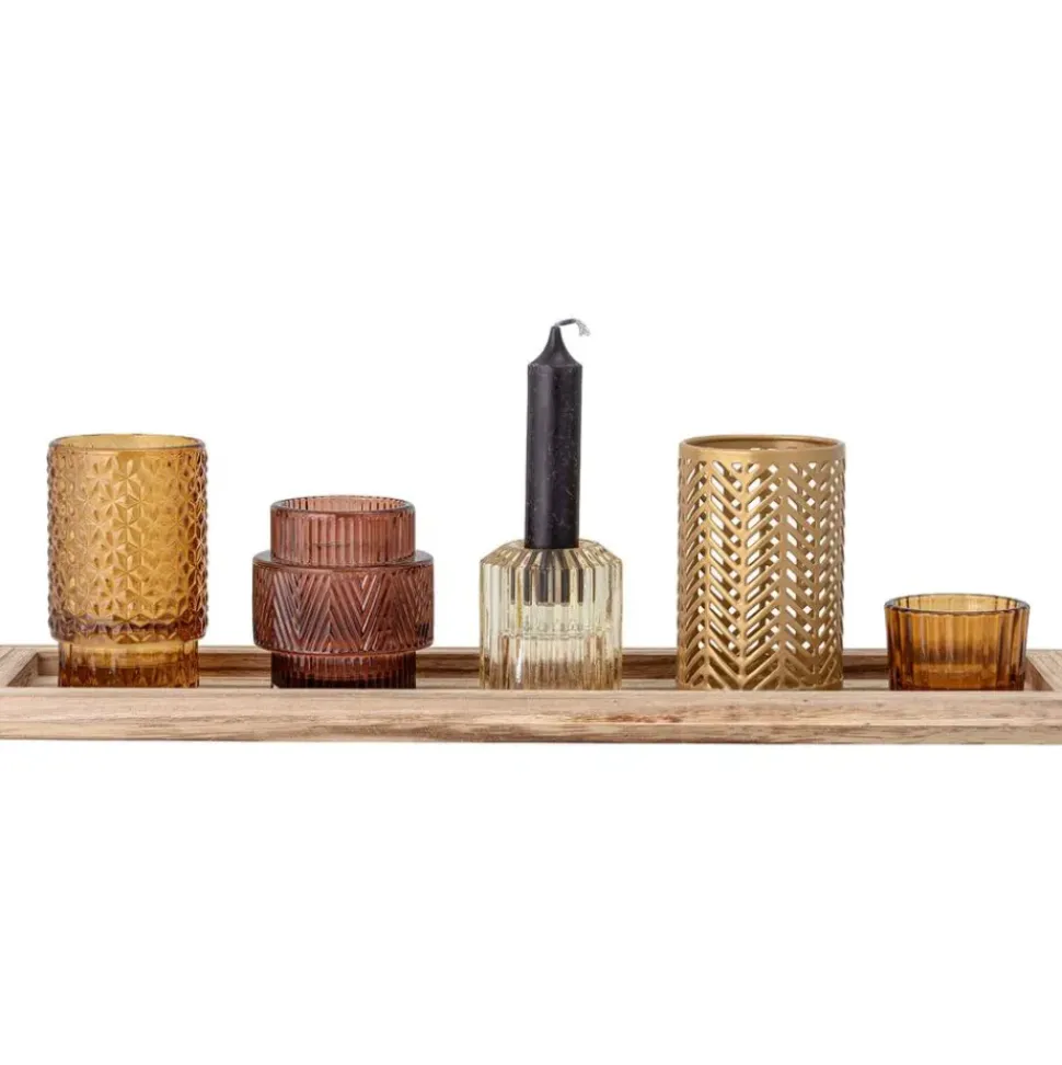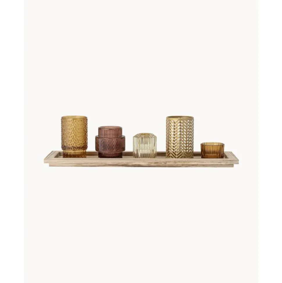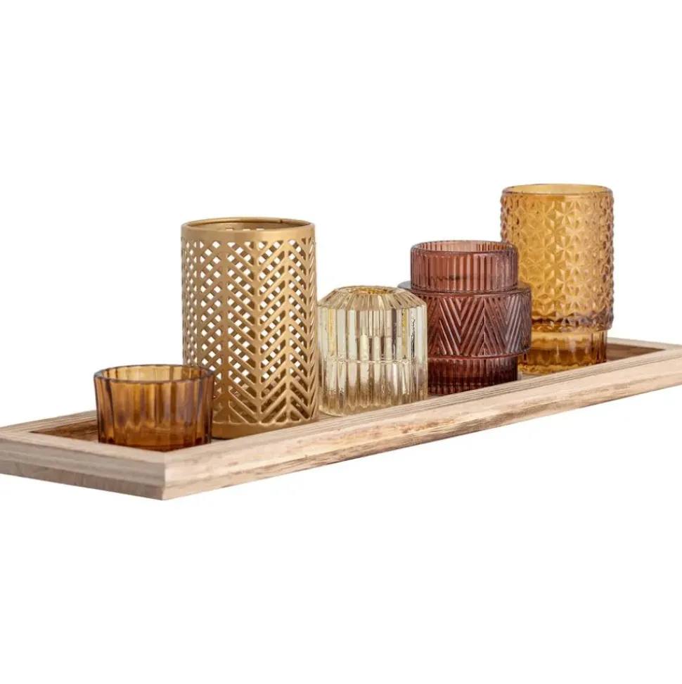 Set De Portavelas Con Bandeja De Madera Elviena, 6 Pzas.