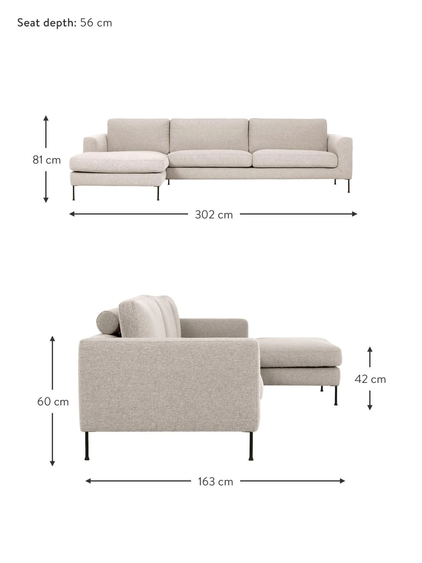 | Tamano | an 302 x f 163 cm, chaise longue izquierda, an 302 x f 163 cm, chaise longue derecha |