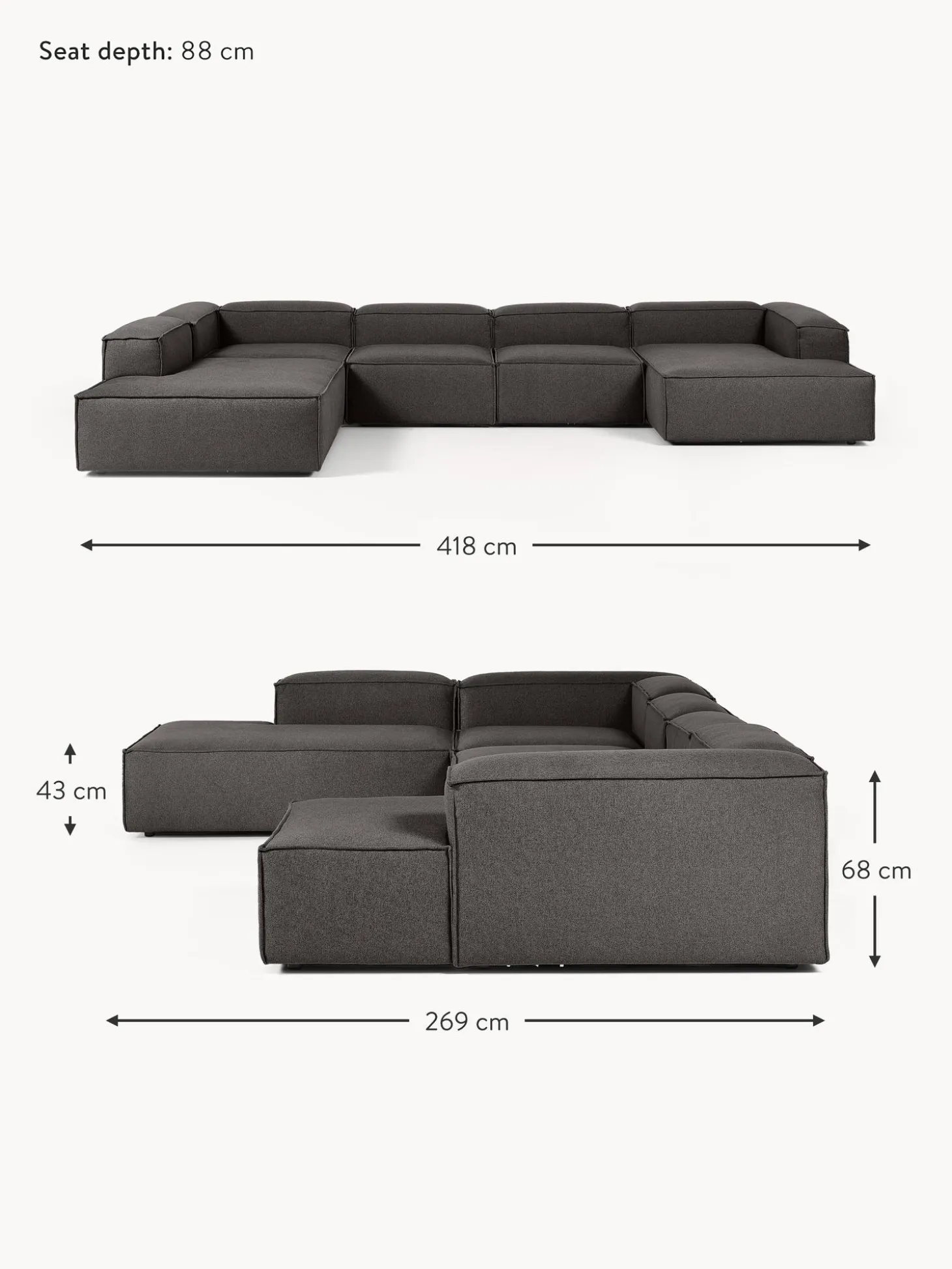 | Tamano | an 418 x f 269 cm, chaise longue izquierda, an 418 x f 269 cm, chaise longue derecha |