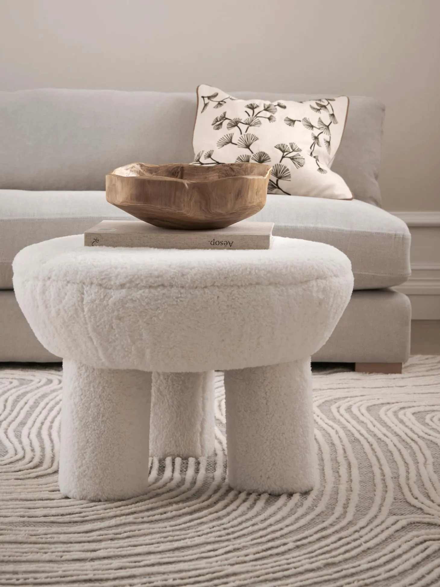 – Taburete Tapizado En Borreguillo Con Tres Patasn- Madera Certificada Fscnnel Producto Se Entrega Completamente Montado.